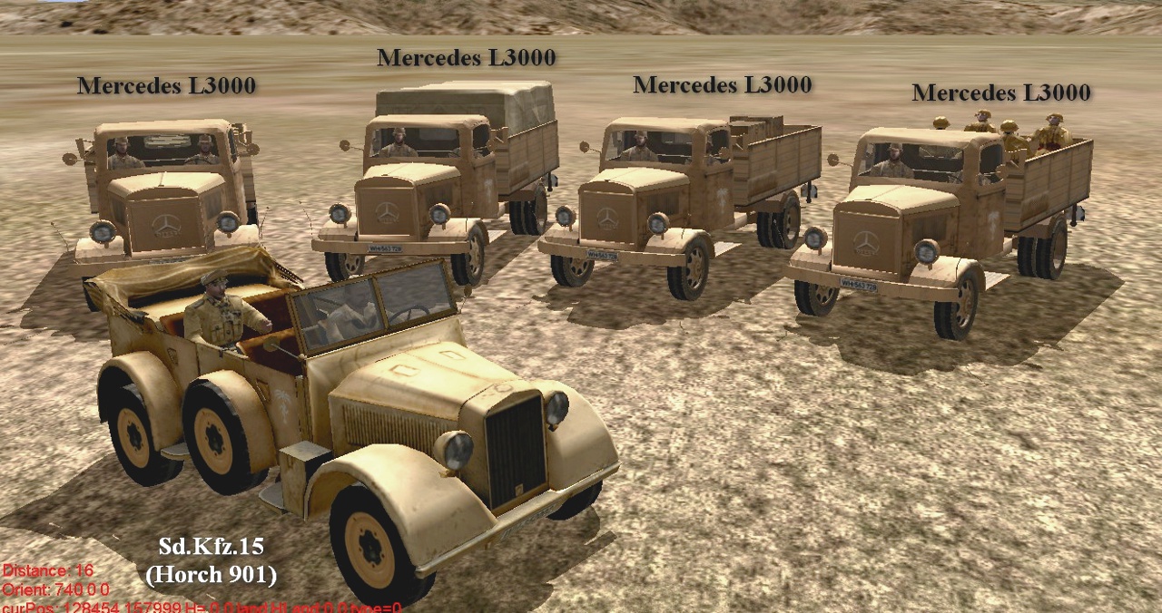 New Vehicles - Horch 901 - Csaba.39M - Mercedes L3000 - trailer Flak88 - Fiat-666 Fuel-Truck: