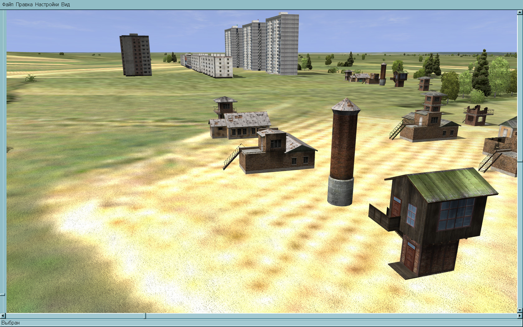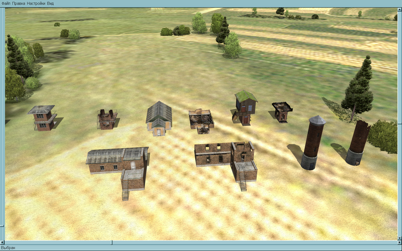 это заброшенные дома. окна и некоторые двери вырезаны в альфе.