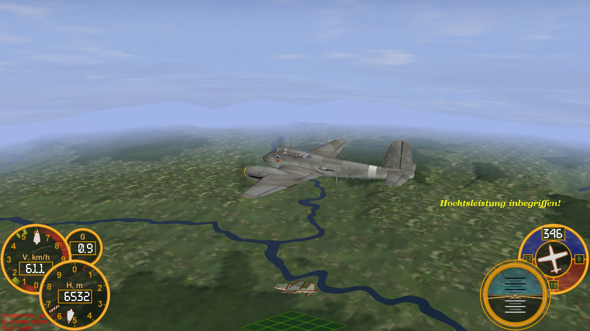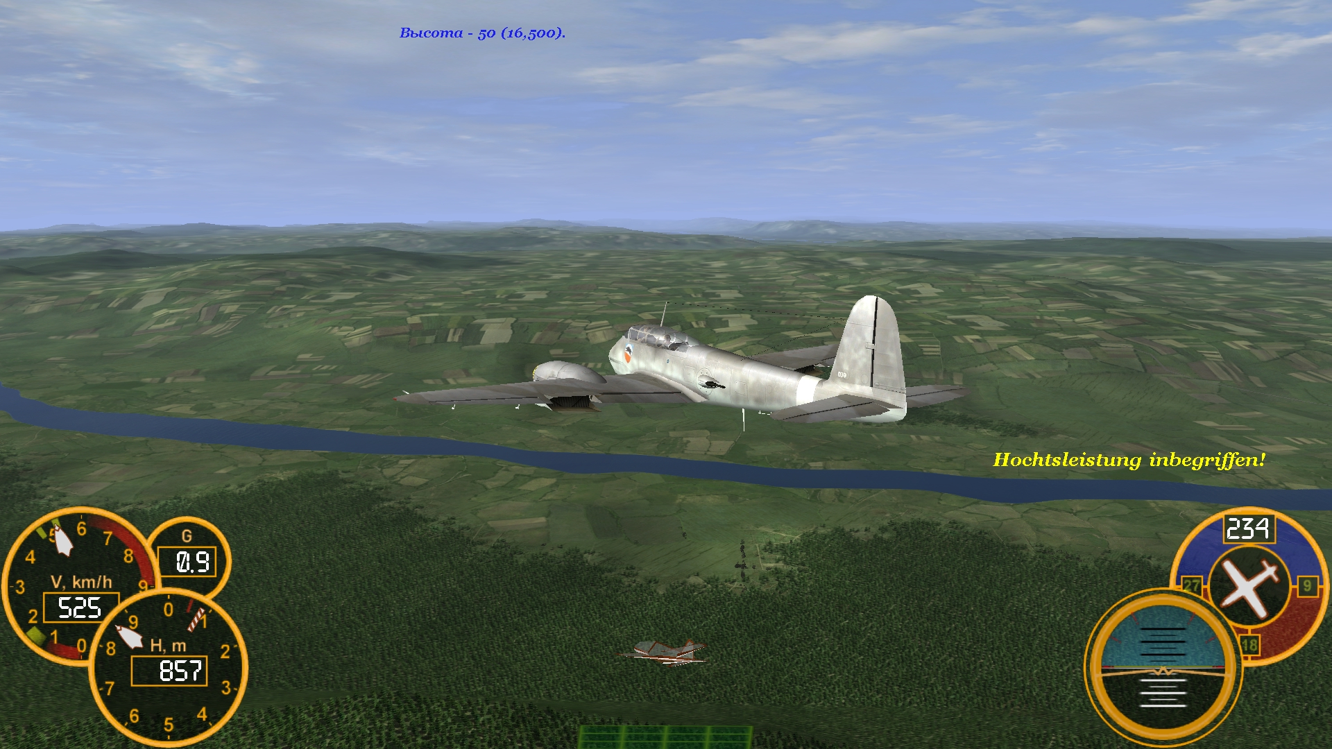 САС-Модакт 5.30 + Енжин-Мод 2.8. Высота 1000 метров - 522 км. в час. - радиатор автомат. Высота 6650/7000 метров - скорость 612/609 км. в час - радиатор автомат. В мурзилках гуляют разные цифры скоростей. Для мотора Ф(аналог Е) пишут 450-460 км. в час., не указывая на какой высоте и режимах двигателя. У нас в игре представлен скорее всего Венгерский вариант улучшеной сборки с моторами ДБ-605Б по 1475 л.с. у земли и 1560 л.с. на высоте 2100 метров. Так что вполен может быть скорость за 600 км., учитывая хорошую высотность мотора и не особо толстый фюзеляж. Кстати: проявилась в игре и неустойчивость по тангажу, так же есть ньюансы с триммированием елеронов - при более-мение устойчивом полёте на максималке у земли, при маневрировании и в атаке самолёт начинает кренить вправо. Подкрутив триммер елерона, получаем паразитные крены на других режимах полёта. Учитывая приличную инерцию от двох моторов на крильях, самолёт откровенно не удобен в боевой експлуатации. А вот садится не сложно, особенно с выставленным шагом и выпущенными тормозными щитками. Ещё у меня много работы, поэтому настраивать Ме-410 буду через пару дней. Целиться так же не очень удобно. После перенастроенного глазомера под патч 4.13.4 - в патче 4.12.2 начинаю мазать на больших дистанциях - 700-900 метров даже по бомбёрам. |