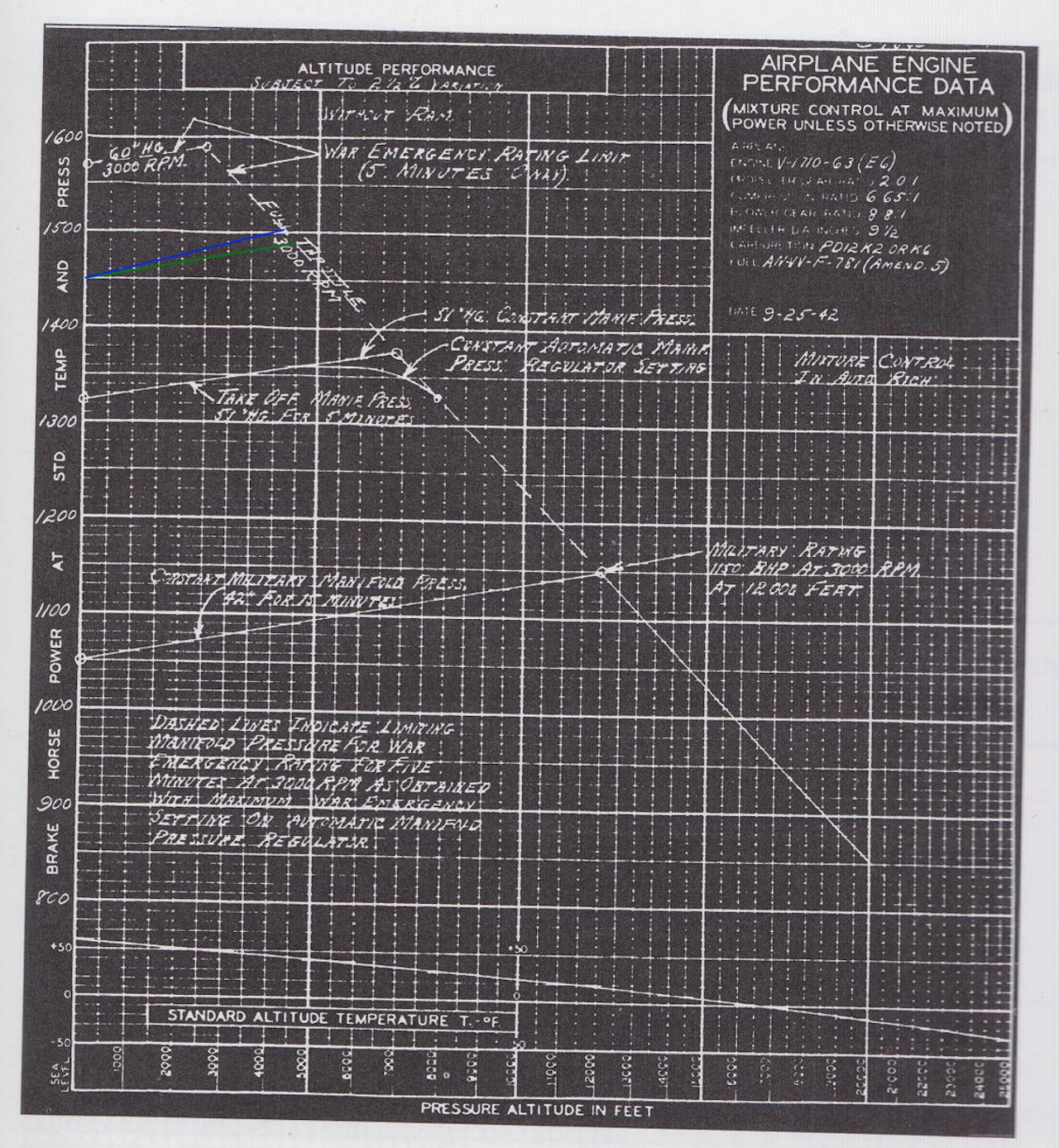 В книге "Дополнение к ТО...", издание 1944 г., но утверждена она была в августе 1943, указано 1215 л.с. В этой таблице почему-то все мощности завышены на 15-20 сил, в сравнении с американскими документами. Вот я смотрю мотор для ранних Кобр V-1710-35. Стоит завышенная взлётная мощность, даже для 100 бензина (1150 л.с. по американским документам) HorsePowers 1165.0 Чрезвычайный режим наоборот недобирает мощность (1347 вместо 1470) и недодувает, хотя с хорошим бензином можно дать и 56" CompressorPMax 1.7956 // 52Hg Смотрю поздние Кобры. Начиная с Q-10 мотор на чрезвычайном режиме передувает, для этого мотора максимум 57" и мощность должна быть 1360, вместо 1407. CompressorPMax 2.032 // 59Hg Ну и с форума БзС насчёт ограничений наддува на V-1710-39 для P-40: Цитата: