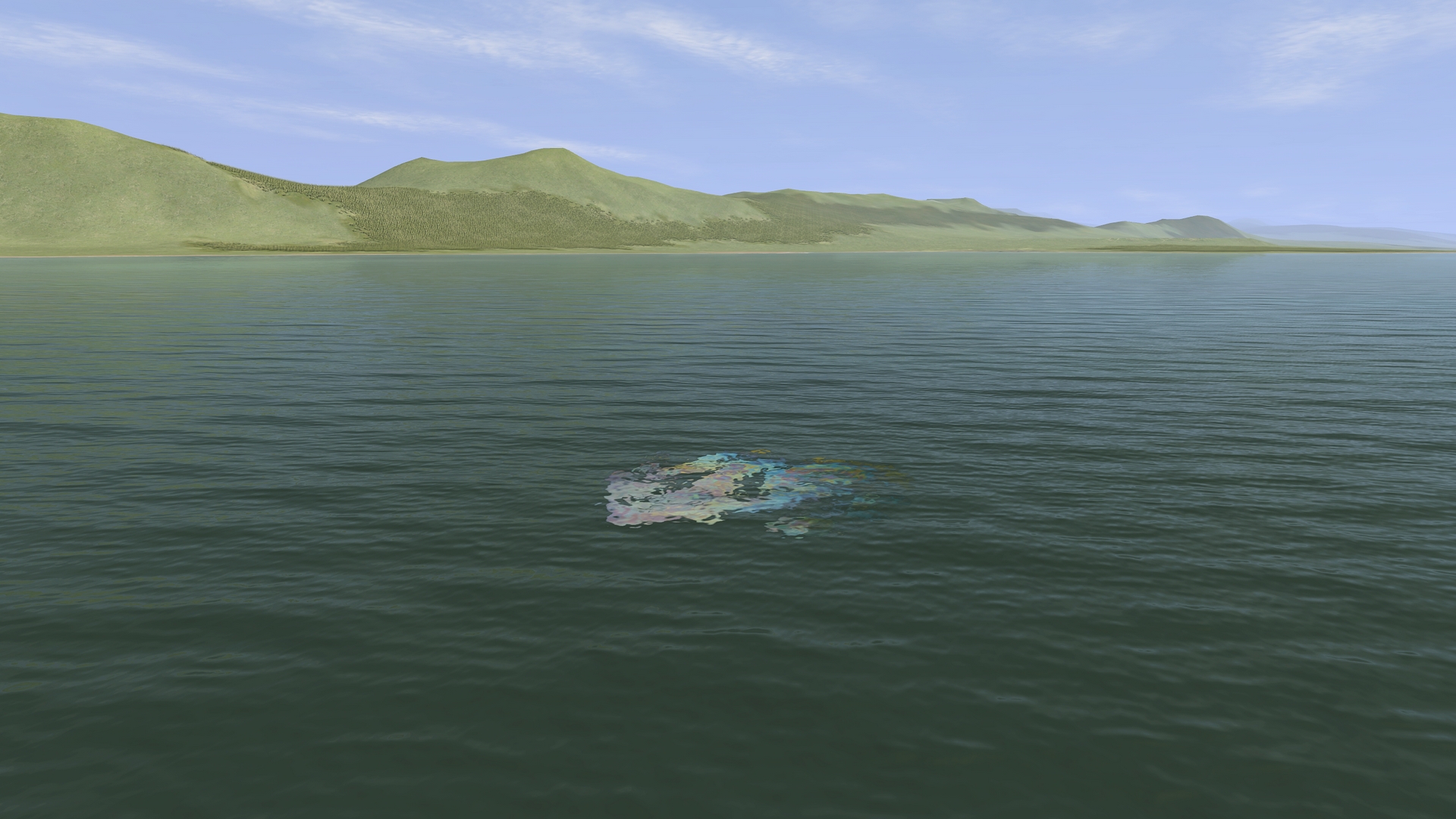 - через 5сек возникает столб воды (это не от взрыва) со звуком выходящего воздуха - скрин 3 и надо бы добавить типа бурления воды;
