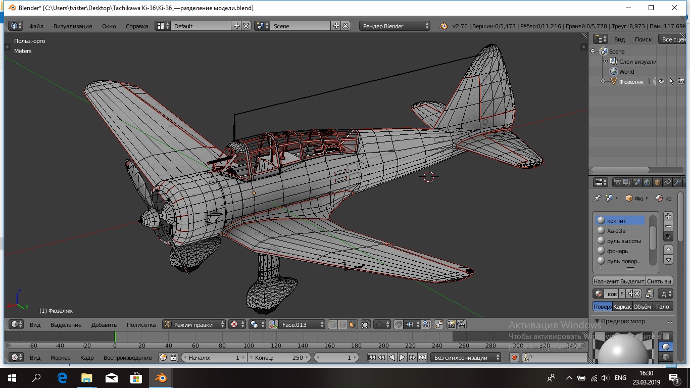 Сегодня нашлось немножко свободного времени, попробую раскроить Иду по образцу и подобию D3A2 и еще раз попробовать импортировать в игру. Модель еще не готова, но хотелось бы глянуть неизбежные ошибки. Глянув на модель Вел-а в блендере, еще раз убедился в отсутствии логики в расположении точек рычагов, (да и пивотов тоже). Это точно не центры геометрической площади и не средние передних кромок управляющих поверхностей, откуда эти точки мне вообще не ясно