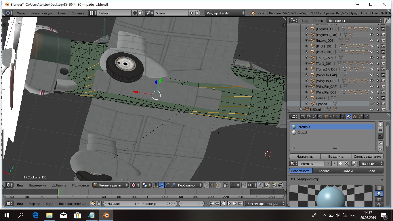 Колесо моего "разлива" весит 320 треугольников, крыльевой пулемет 80. Пулемет стрелка-наблюдателя выдернутый из Д3А1, весит 124 треугольника. "Нежным движением руки" модель полегчала на 7000 треугольников, и это в общем не предел. Есть мысли по поводу мотора, тоже весит явно избыточно, но есть кой какие задумки по поводу модели повреждений, так что пока мотор не трогаем. Последний раз редактировалось tvister; 01.06.2019 в 22:47. |