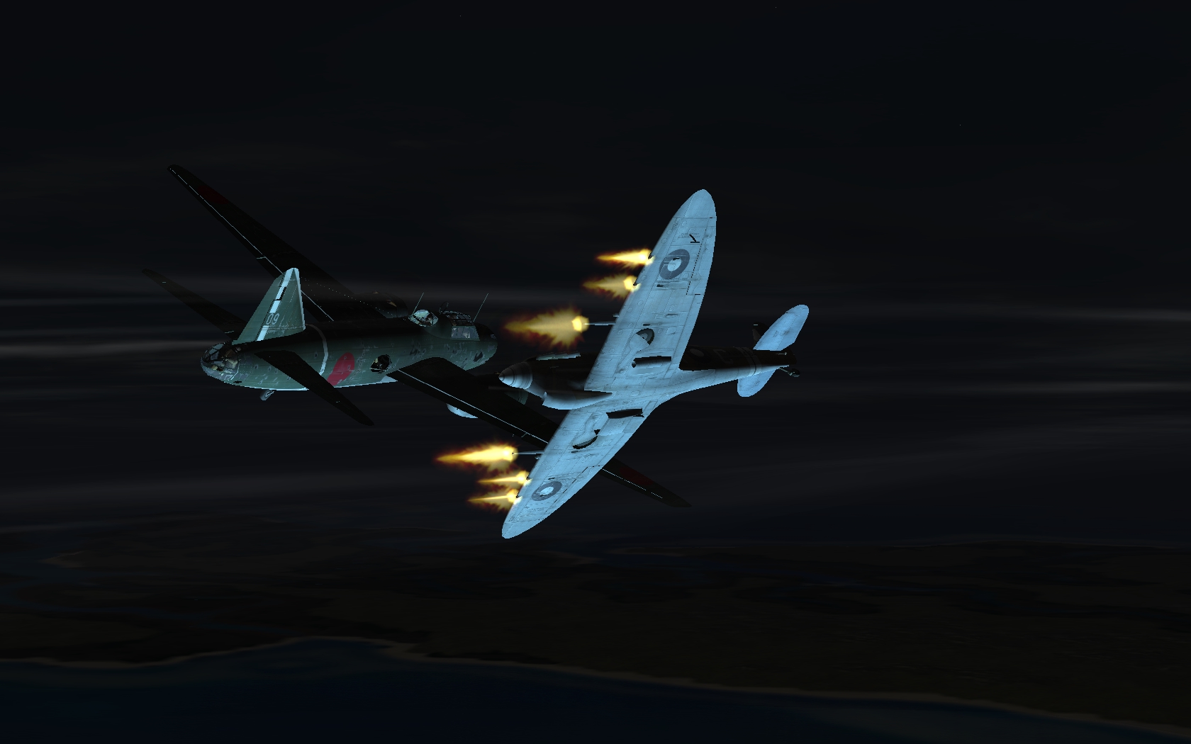 Еще один апдейт по Дарвинским Спитфайрам. Сейчас я прохожу эту кампанию, и, как всегда, никакой тест не сравнится с неспешным прохождением кампании. Судя по первым двум миссиям, получилось норм. В 1943 обычные Спитфайры-пятерки несколько раз вылетали на ночной перехват японских бомберов над Дарвином. Точно не знаю, но скорее всего они находили японцев при помощи прожекторов, зениток и наведения с земли. В кампании это тоже срабатывает:
