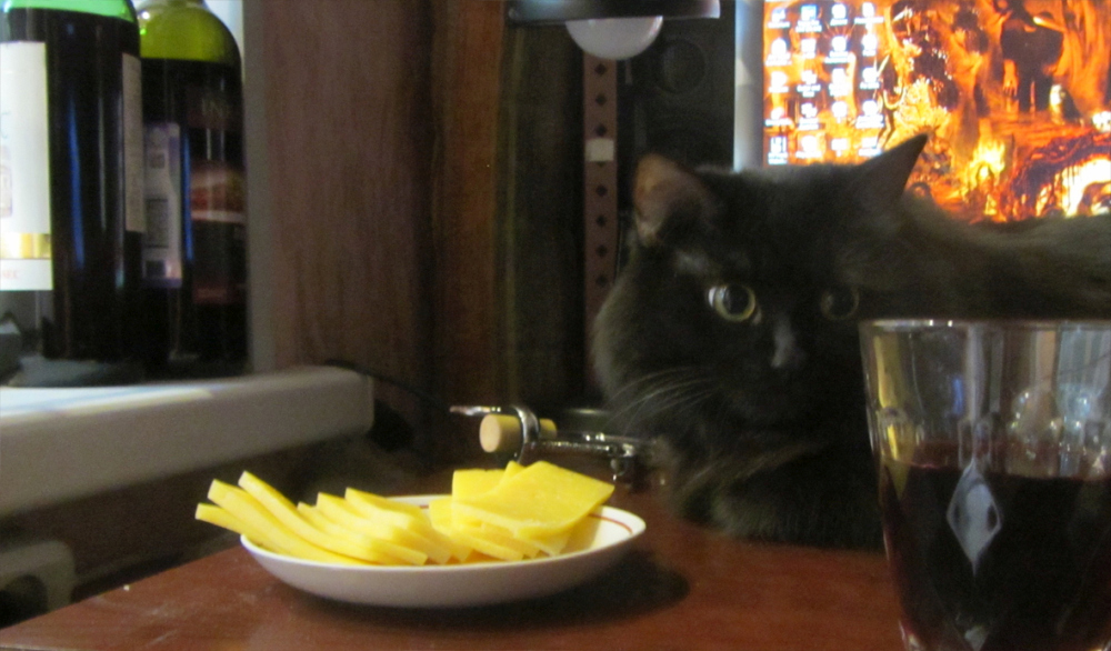 Думаю, я бы за свою, сам бы всех съел. Балую её... Это где-то час назад, она тырит мою закуску. Я с неё реально ржу, она как ребёнок, думает никто её не видит )))