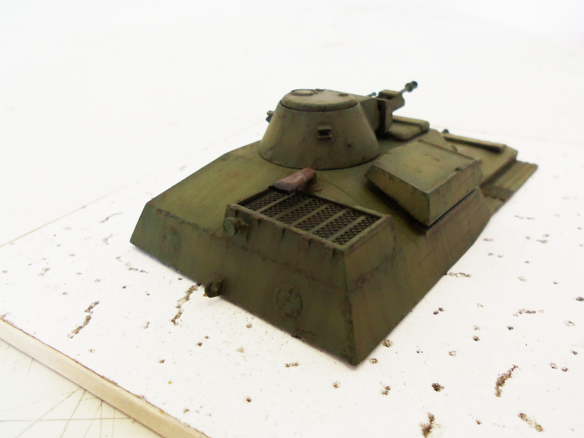 На днях нашел среди хлама остатки Т-40. Хотел пустить на запчасти, но один из моих учащихся решил немного подсобрать его и сделать диорамку. От модели есть только верх, а посему решили делать Т-40 плывущим по воде, либо полузатонувший.