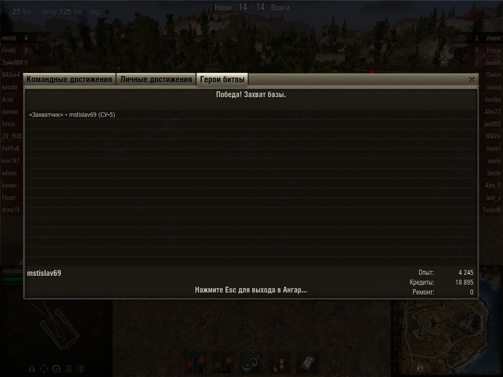 Попал вчера на высадку в Эль-Халуфе на Су-100 против седьмых Исов. Составы были неполные с обоих сторон, работал светляком. Выиграли, и такой итог
