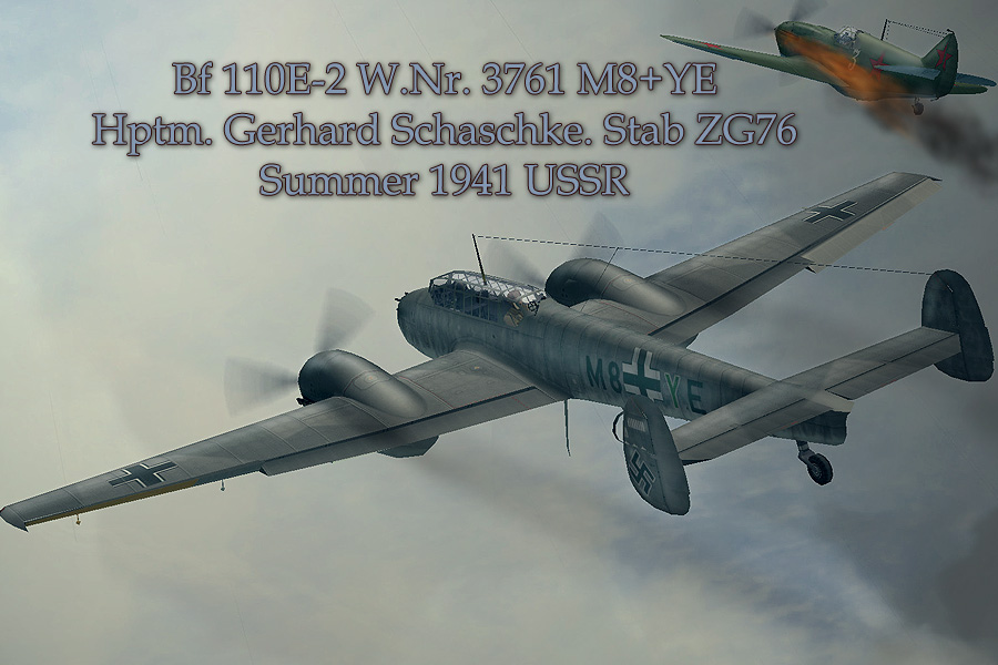 Bf 110E-2 W.Nr. 3761 M8+YE Hptm. Gerhard Schaschke. Stab ZG76 Summer 1941 USSR