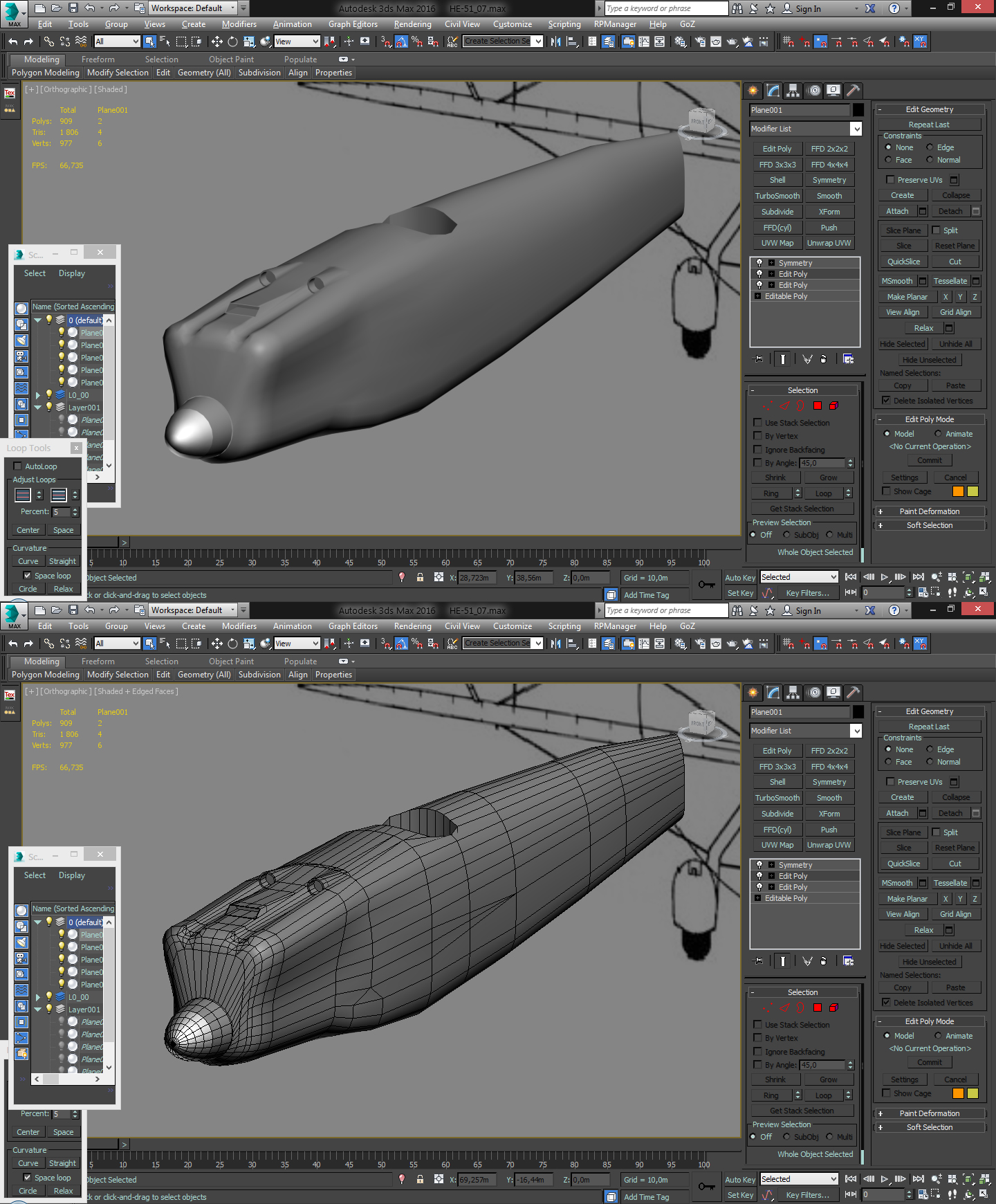 Спасибо. О релизе говорить рано... В свободное время делаю. Сегодня смысла нет выкладывать скриншоты. Успел только стойки шасси и РН сделать. Очень много времени просидел над Стойками... Делал их не отдельным мешем, а соединенными с флюзеляжем. Так намного красивее смотрится. Но занимает много времени на правку сетки. Тяжело сейчас говорить о "красивости". Нужно закончить полностью модель, а потом в зависимости от кол-ва полигонов доделывать по мелочи. Хотя, один скрин под рукой есть.