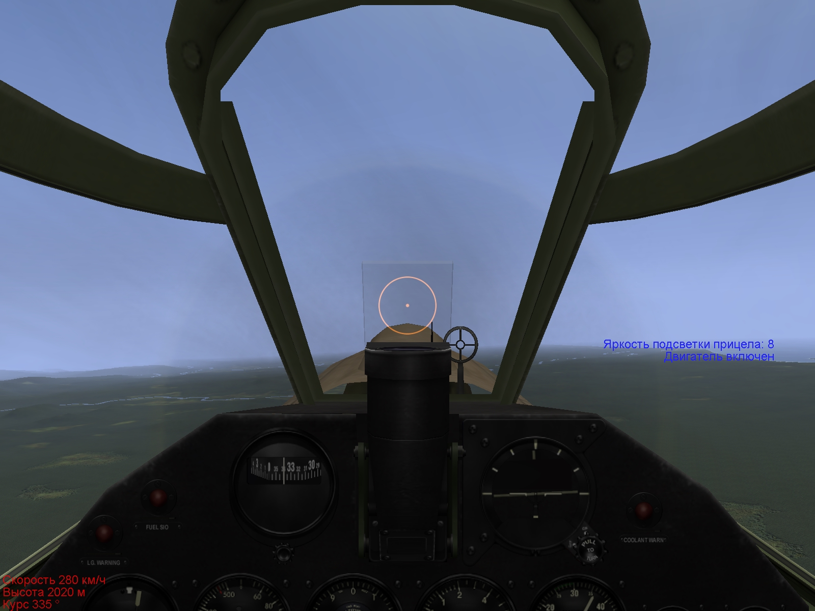 Небольшой баг. Скриншот во вложении. На P40Е. Возникает, если во время паузы переключиться на вид из кабины пилота. Причем как только пауза прекращается - все становится нормально.