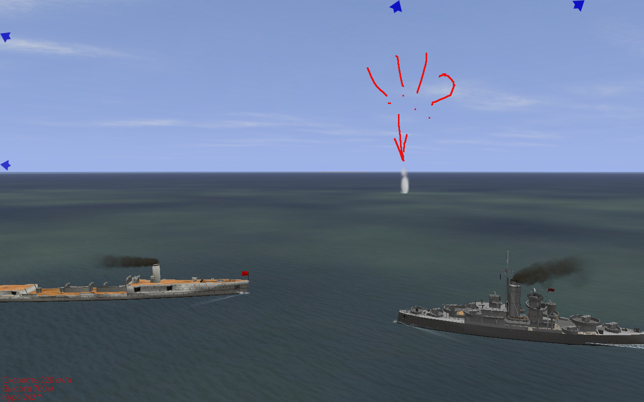 public KrasnyiKrym() { ^ -cruisersSU.java:18: invalid method declaration; return type required public KrasnyiKrym(String string, int i, SectFile sectfile, ^ 2 errors Для продолжения нажмите любую клавишу . . . По видимому это таки не классы. Взял классы о "рабочего," с адекватным поведением корабля Х. Переименовал где надо, заготовку в Х. загрузил в игру, то же безобразие! Поставил Крым как стационар и заставил кружиться вокруг него противника. Странно, стрельба по площадям и никакой логики. Или это мне так кажется? Есть одна особенность, Крым не стреляет в нос и в корму. Почему не стреляет в корму на углах -150,150 мне ясно, а с носом не очень... После модернизации 1934 г. на носу перед погонным орудием появилась 100 мм. спарка системы Минизини. В модели с вооружением на 1942 г. она тоже присутствует. На данном этапе она выделена, порезана на башню и стволы, но временно "отключена" от экспорта и визуализации. Вчера пытался "запустить" и зенитку и погонное орудие. Как и следовало ожидать крейсер "заклинило." Может причина в этом?