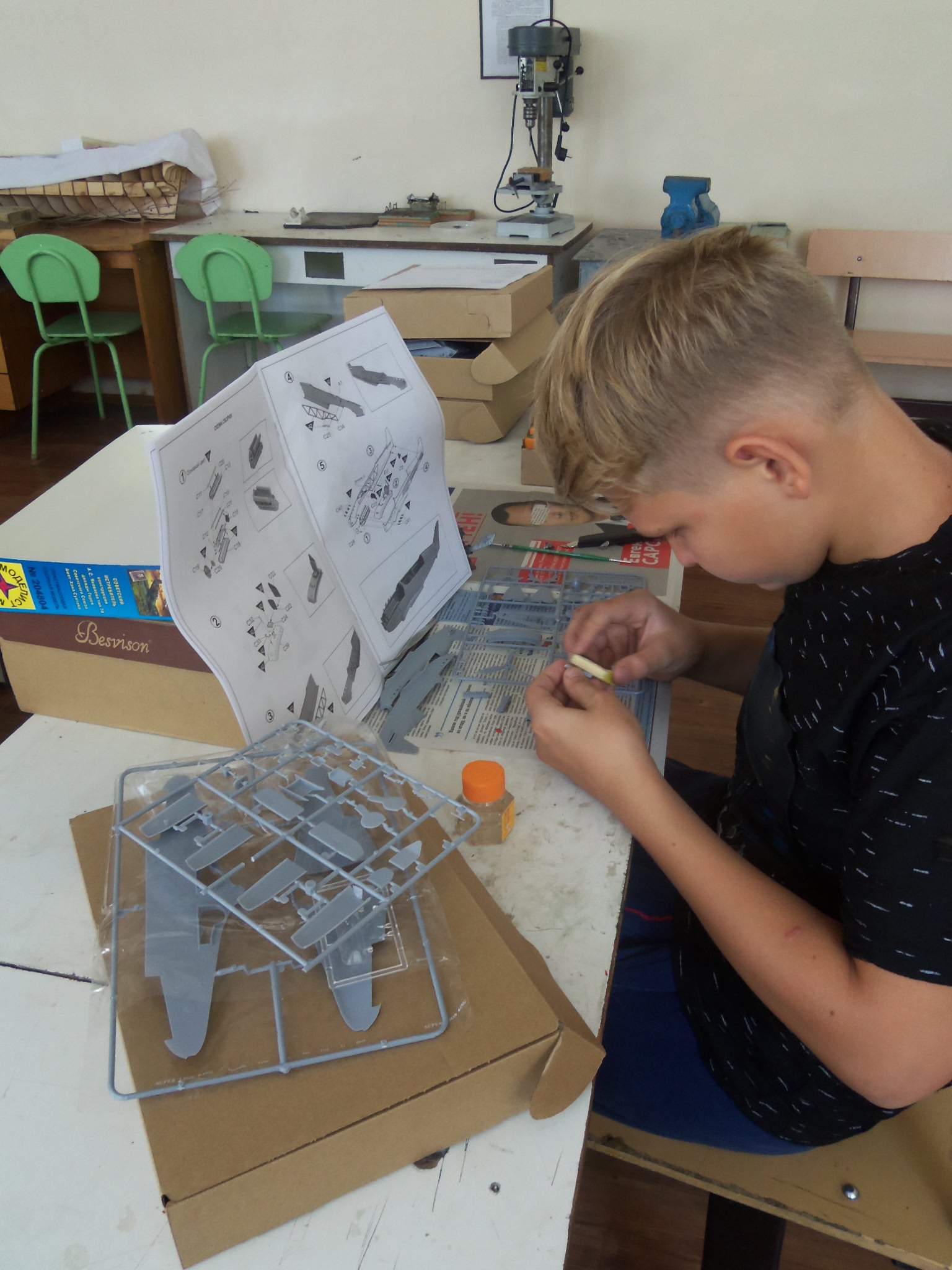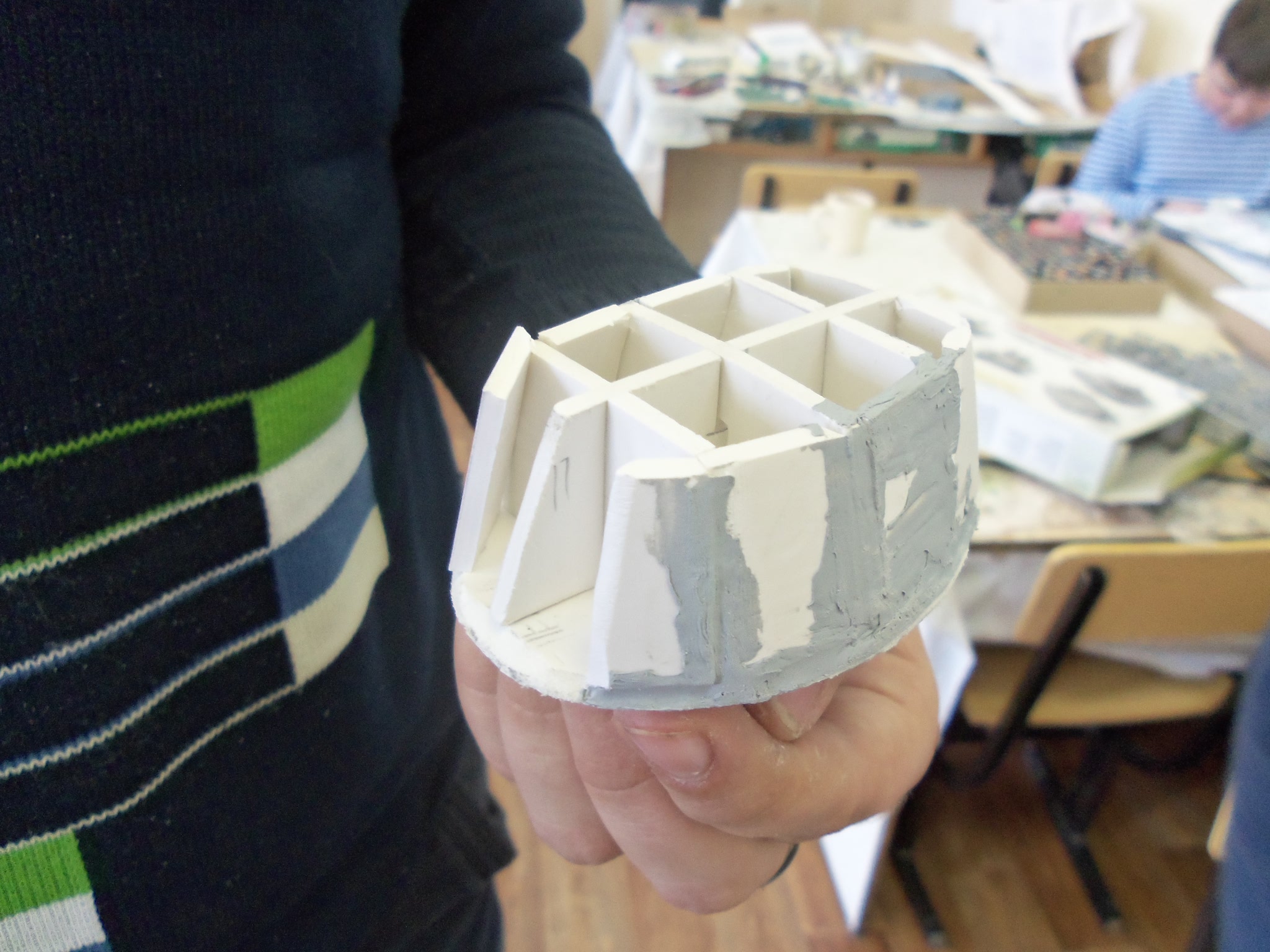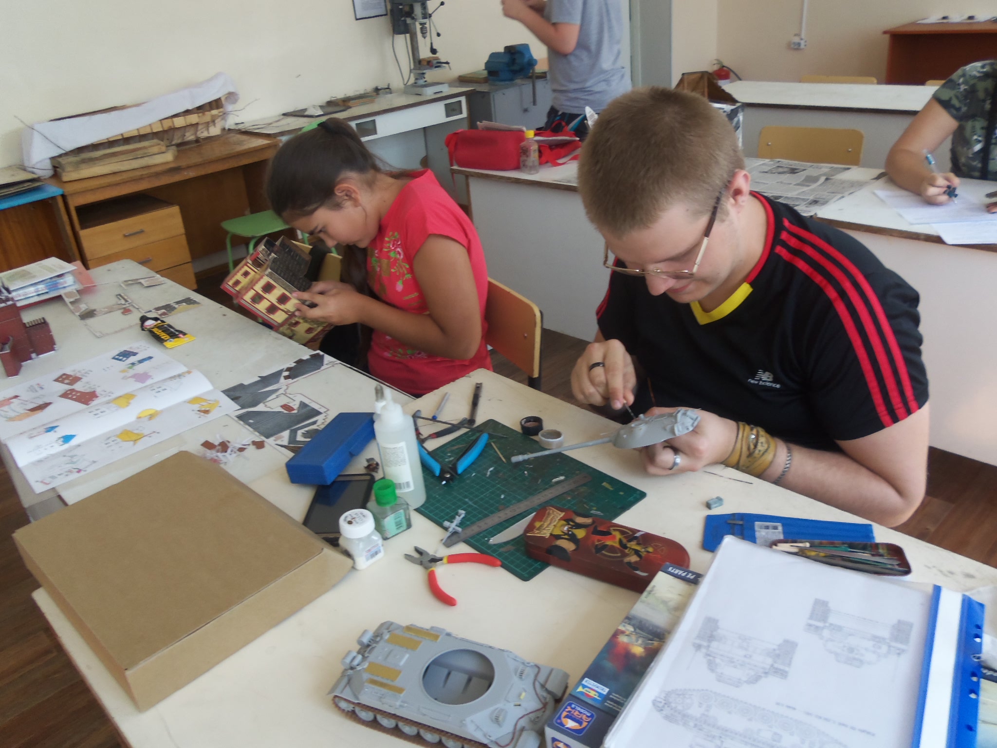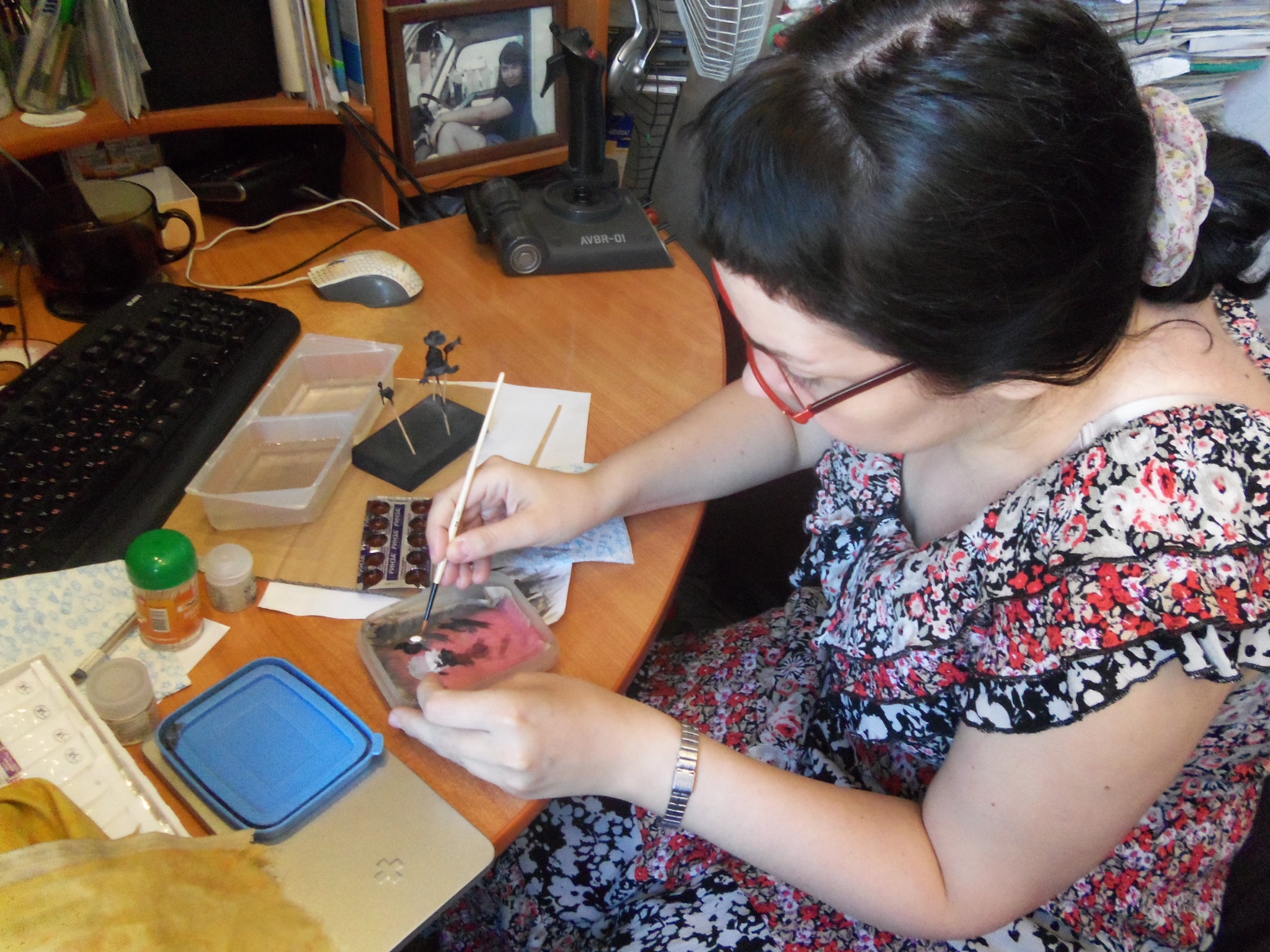 Она сама по себе занимается. Она преподаватель истории и обществознания, ей работы и без кружка хватает. Она дома иногда красит, либо делает модели.