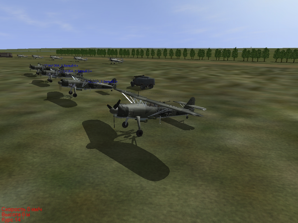 Текст миссии: 5 сентября 1939 года. 10 час 00 мин. Вы немецкий военный летчик, командир авиазвена легких бомбардировщиков-разведчиков Hs-126 и участник Польской кампании 1939 года. Вашему звену поставлена боевая задача – нанести бомбовый удар по польскому военному аэродрому «Бреслау-1» на котором базируются польские легкие бомбардировщики PZL P. 23B «Karas». Вас не будут сопровождать наши истребители – они все задействованы на прикрытии наших средних бомбардировщиков He-111 и Ju-88, но наш аэродром прикрывает с воздуха пара Bf-109D-1. Польский аэродром «Бреслау-1», по которому вы будете работать, не имеет зенитной артиллерии, но прикрыт парой польских истребителей Р-11С в положении дежурство в воздухе – будьте очень внимательны! Задача: Звеном Hs-126 нанести бомбовый удар по польскому аэродрому «Бреслау-1». Уничтожить польские бомбардировщики PZL P.23B «Karas» и склад ГСМ. Полет к цели и обратно производить компактной группой – возможны встречи с истребителями противника. Маршрут полета указан в полетной карте, эшелон на маршруте 1000 - 1300 м, погода на маршруте – ПМУ. После выполнения задачи произвести посадку на своем аэродроме. Вариант вооружения звена HS-126: 3х50 Kg SC50 Скины самолетов звена HS-126: Hs-126A-1_5D+DK_Mj. Stainer |