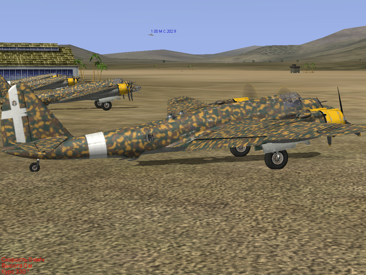 - оказывается, нет карты Средиземноморья с островом Сардиния и с западной оконечностью Северной Африки (районы Гибралтара и Алжира) – такую карту я не нашел. - имеющийся на SAS пак карт Северной Африки (2 карты и обе без о. Сардиния, но на них есть о. Сицилия, где так же базировались и немецкие и итальянские ВВС) устанавливается в мод. сборку ДЖЕТ ЭРА 1.5, но миссии, созданные на этих картах, не сохраняются. Поэтому пришлось использовать дефолтную сетевую карту Средиземноморья и маршрут полета пары Р.108 проложить от одного острова (играет роль о. Сардиния) к другому острову (играет роль о. Мальта, где в реальной жизни базировались английские ВВС). Миссию я назвал «Р.108». Текст брифинга миссии: 6 января 1943 г. Наша 274-ая эскадрилья дальних 4-х моторных бомбардировщиков Р.108 базируется на полевом аэродроме Дечикоманна, расположенном на острове Сардиния. В настоящее время в эскадрилье осталось 5 исправных и боеготовых бомбардировщиков Р.108. На нашем аэродроме посадили и звено из 4-х новейших итальянских истребителей МС. 202 – они будут сопровождать нас при боевых вылетах. На наш аэродром производят посадки для дозаправки топливом и снаряжения боекомплектом и другие самолеты Италии и Германии. Сегодня на 9 часов утра запланирован боевой вылет пары Р.108 для нанесения бомбового удара по аэродрому Та-Кали на острове Мальта – на этом аэродроме базируются английские 2-х моторные средние бомбардировщики Веллингтон и истребители сопровождения Харрикейн. Нас будет сопровождать пара истребителей МС. 202. Задача: Вы ведущий пары Р.108. Аэродром Дечикоманна окружен высокими холмами – будьте очень внимательны при взлете и, особенно, при посадке! При взлете сразу начинайте плавный набор высоты, но внимательно следите за скоростью, не допускайте ее снижения ниже 190 км/час! Маршрут полета к цели указан в полетной карте, эшелон полета на маршруте 1500 - 2000 м, погода на маршруте – ПМУ. Вас сопровождает пара истребителей МС. 202. На подходе к аэродрому Та-Кали (остров Мальта) возможна встреча с английскими истребителями – будьте очень внимательны! Бомбометание произвести с высоты не менее 2000 м - пво аэродрома имеет малокалиберную зенитную артиллерию. Вашими целями являются стоянки бомбардировщиков Веллингтон и склады ГСМ, сделайте 2-3 захода на цель. Вариант вооружения пары самолетов Р.108: 7х500 Скины пары самолетов Р.108: ITAF_S1.bmp |