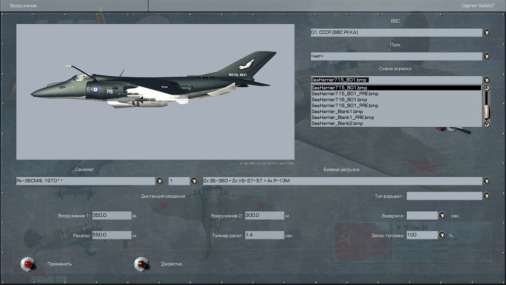 Скинь сюда два скина на Як-36 - если не получится одеть их самому. Последний раз редактировалось Vasya; 12.06.2017 в 04:21. |