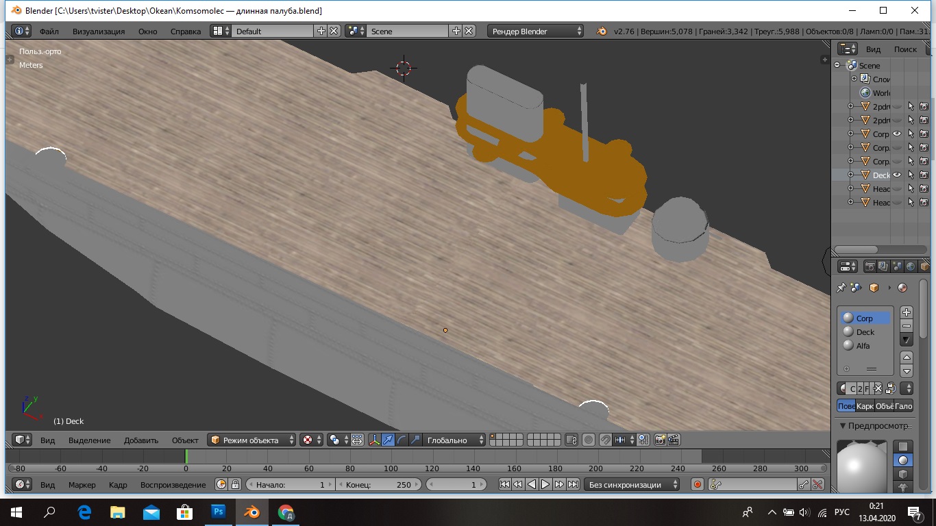 Проект "Комсомолец", закончу в ФШ. Следующий проект попробую на новом Гимпе. Вот проблема, хочу наложить достчатую текстуру полетной палубы с сохранением теней , как на модельке. В Гимпе это можно было сделать, а в ФШ пол дня ничего не могу сделать. Я для себя понял, ФШ,это реально мощный инструмент профессионала, но я то не проф и. А последний Гимп резко прибавил в функционале, в свое время я как ни странно, из-за этого от него отказался.Посмотрим... |