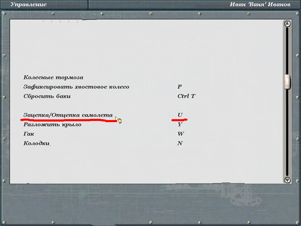 Ну это понятно, убрать колодки. Он у меня в начале полосы и стоял. Это я под катапульту загнал. У меня в старой версии катапульта работала самолет под рельсу загоняешь нажимаешь клавишу "?" уже забыл какую, высвечивается надпись "Катапульта поставлена" и взлет со столь короткого отрезка происходит на большей скорости за счет катапульты.