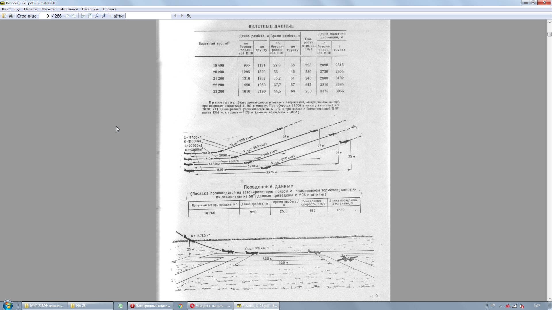![]() При загрузке 4хФАБ-500 + 100% топлива, на бетонных аэродромах отрыв с трудом происходит с последних плит, причём триммер руля высоты выкручен вверх почти до упора. С грунтовых аэродромов взлететь вообще не получается. Движки дико греются, уже на разбеге можно словить перегрев. Скорость и высоту набирает очень медленно. Нашёл в сети альбом наглядых пособий по Ил-28, ниже скрины технических и лётных данных, надеюсь инфа будет полезна. ЗЫ. При взлётном весе 22200 кг (3-й вариант загрузки) длина разбега 1480м, время разбега 37,7с, скорость отрыва 245км/ч (в игре, карта Крым-лето, в конце бетонной ВПП скорость 220 и время 47-48с, т.е. движки имхо не додают мощности) |