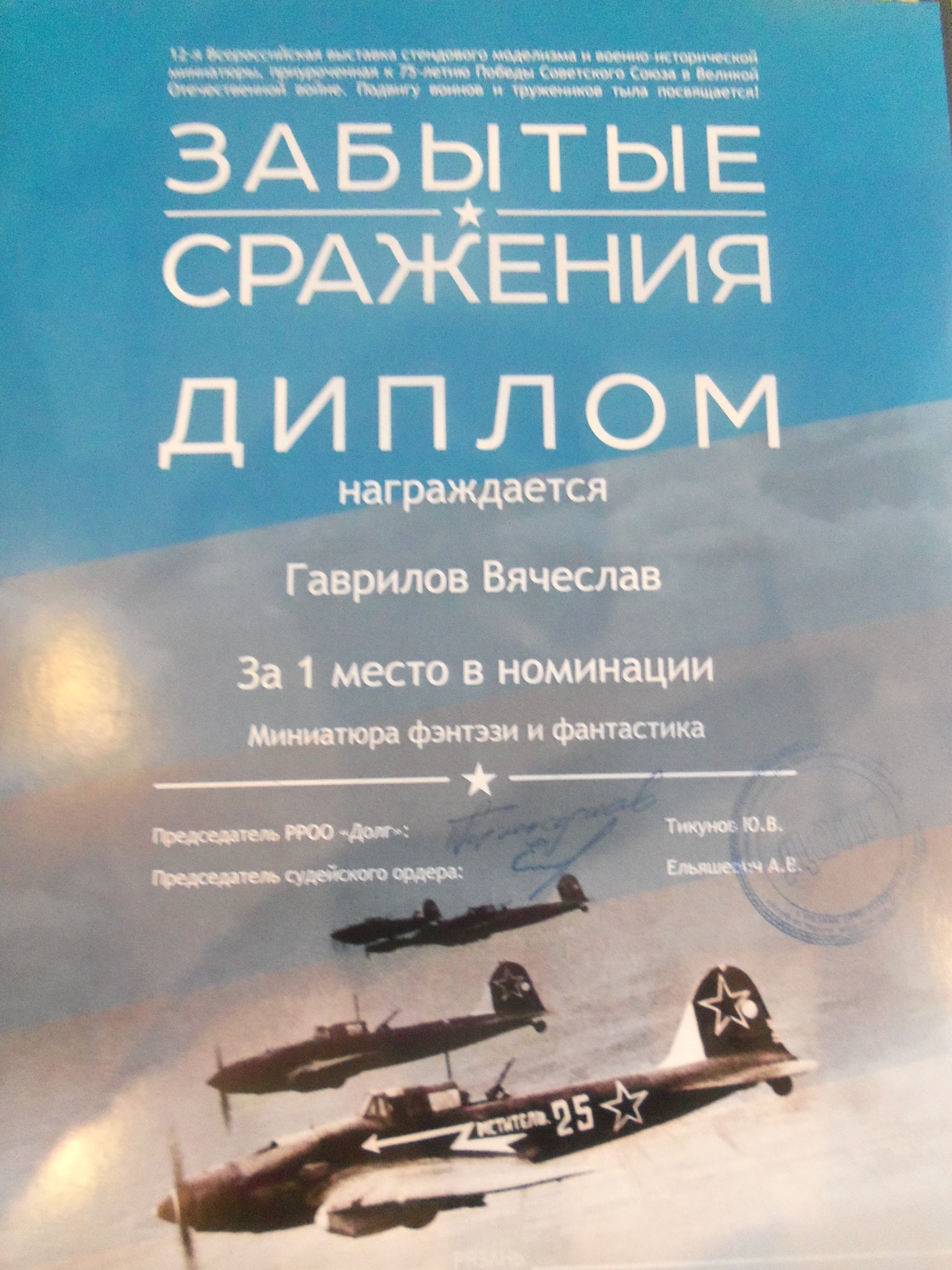 Сегодня получил детские призы и дипломы с выставки "Забытые сражения", что прошла в Рязани. Большое спасибо Юрию Тикунову , Вадиму Муляру и всем кто продвигает моделизм в нашей стране!