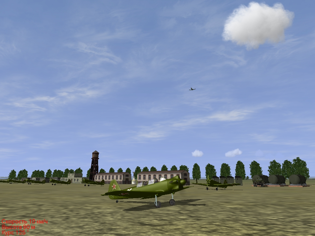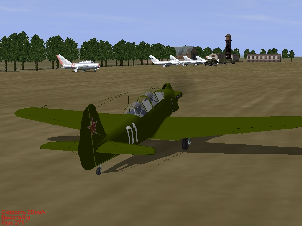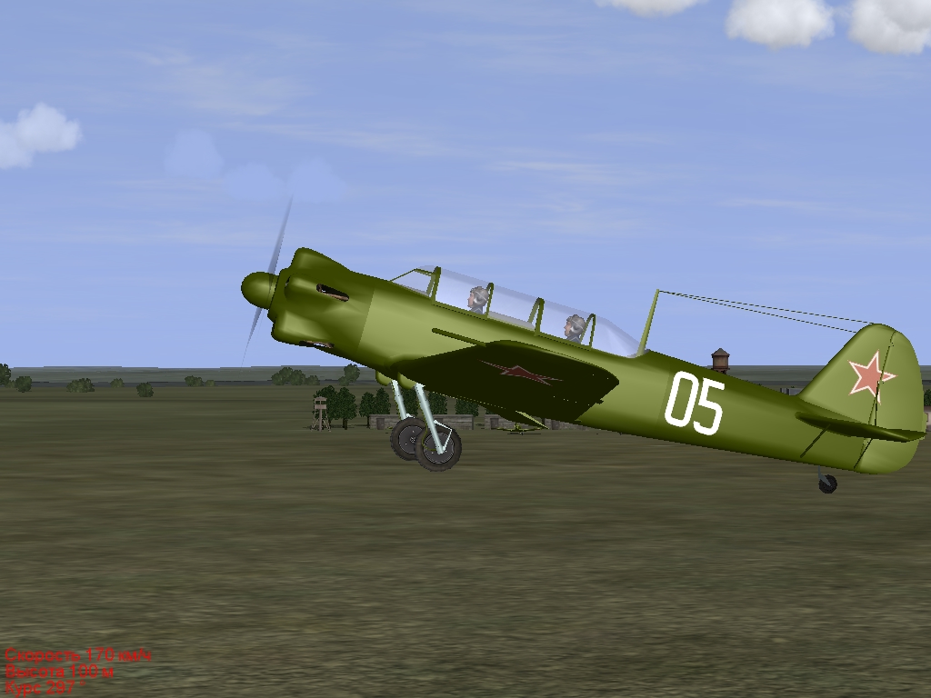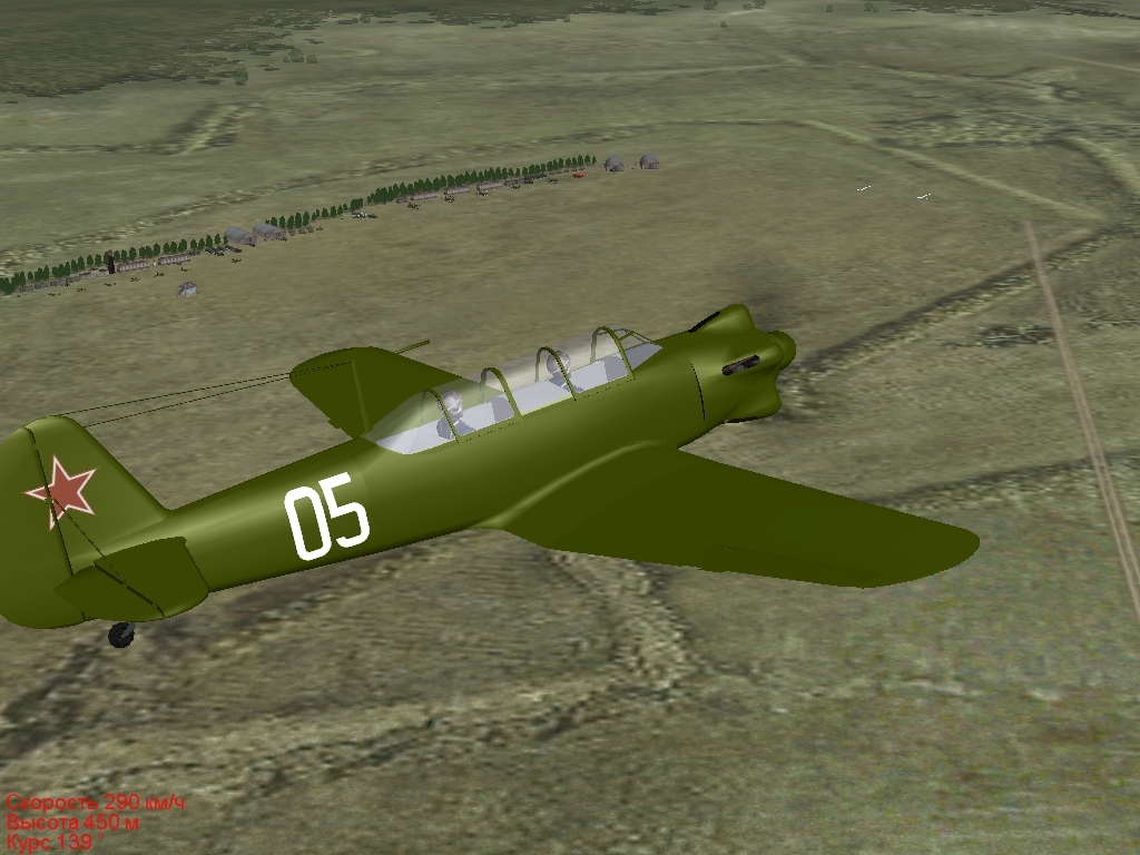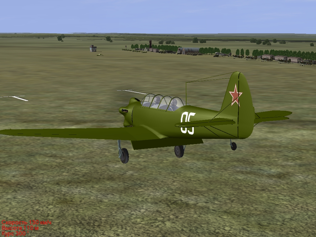 15.06.1955 года, Саратовский аэроклуб, полевой аэродром «ДУБКИ», время 15 час 00 мин, погода – ПМУ. Наконец то успешно завершена программа теоретического обучения к полетам на поршневом учебном самолете ЯК-18, все зачеты сданы с оценкой «отлично». Так же успешно завершена и программа парашютной подготовки. Вы получили допуск к практической летной подготовке на учебном самолете ЯК-18. С сегодняшнего дня ваша летная группа приступает к практическому летному обучению. Вот дошла очередь и до вас. Вы, вместе с вашим летчиком-инструктором, приняли доклад от механика самолета о готовности самолета к полету, выполнили предполетный осмотр самолета и заняли место в его передней кабине. Инструктор сел в заднюю кабину. У руководителя полетов (РП) запросили разрешение на запуск двигателя и на выруливание на исполнительный старт. Полетное задание: Ознакомительный полет по левому кругу в зоне аэродрома «ДУБКИ» (маршрут полета отражен в полетной карте). Вырулить на исполнительный старт, выпустить закрылки в положение «Взлет» и запросить у РП разрешение на взлет. После подтверждения, выполнить взлет, убрать закрылки и шасси. В точке первого разворота ваша скорость должна быть 160 км/час, высота 130-150 м. Выполнить первый левый разворот с креном 15 градусов, продолжать полет к точке второго разворота с набором высоты. В точке второго разворота высота полета должна быть 400 м, скорость полета 150 км/час. Выполнить второй разворот с углом крена 15 градусов, далее выполнять горизонтальный полет к точке третьего разворота. Выполнить третий разворот с углом крена 15 градусов, продолжать полет к точке четвертого разворота, выполняя снижение до высоты 250 - 200 м и выдерживая скорость полета 150 -140 км/час. Запросить у РП разрешение на посадку и получить подтверждение. Выполнить четвертый разворот с углом крена 15 градусов, выйти в створ летного поля аэродрома, планирование производить со скоростью 130 км/час, на высоте около 100 м выпустить закрылки в положение «Посадка», выпустить шасси (проконтролировав загорание зеленых ламп сигнализации), плавно снижаясь, выравнинание начать на высоте 5-6 м, обеспечив плавное касание грунта обеими колесами основных стоек шасси. На пробеге, плавно опустить хвостовое колесо и зарулить на свое место на общей стоянке. Будьте внимательны и осторожны – в зоне аэродрома идут плановые полеты! Скин вашего самолета – стандарт. Вариант вооружения – default. |