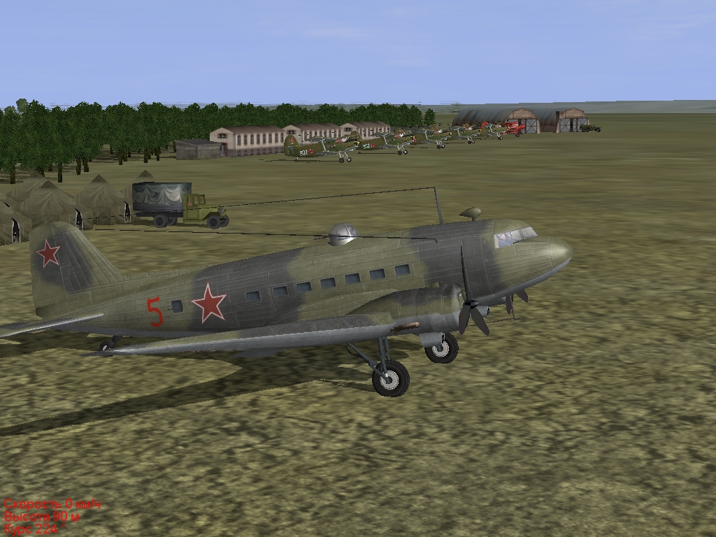 10.07.1955 года, Саратовский аэроклуб, Полевой аэродром «ДУБКИ», время 16 час 20 мин, погода – ПМУ. Одновременно с летной подготовкой для курсантов летных групп в аэроклубе проводилась и паращютная подготовка. Одиночные и групповые прыжки с парашютом выполнялись в зоне аэродрома с аэроклубовского транспортного самолета ЛИ-2 с высоты 1000 м. Ориентиром для приземления был крест, выложенный из белых полотнищ на летном поле аэродрома. Вы уже совершили необходимое количество прыжков и завершили программу своей паращютной подготовки, но вас очень заинтересовал транспортный самолет-ветеран ЛИ-2, находящийся в штате Саратовского аэроклуба ДОСААФ. Этот самолет имел долгую историю, активно участвовал в Великой Отечественной войне, по окончании которой был передан в Саратовский аэроклуб. Экипаж самолета состоял из летчиков-ветеранов, участников войны. Во время паращютных прыжков, дожидаясь своей очереди на прыжок, вы всегда находились рядом с открытой пилотской кабиной и внимательно наблюдали за работой экипажа ЛИ-2. После завершения паращютной программы вы обратились к своему летчику-инструктору с большой просьбой о разрешении войти во временный состав экипажа самолета ЛИ-2 в качестве правого летчика и совершить полет на выброс курсантов-паращютистов других летных групп аэроклуба. Ваш летчик – инструктор, зная вашу хорошую летную подготовку, пообещал помочь вам. Через некоторое время ходатайство вашего летчика-инструктора было рассмотрено руководством аэроклуба и вам, как отличнику учебы, было дано разрешение войти во временный состав экипажа самолета ЛИ-2, но, предварительно, вы должны были изучить «Инструкцию экипажу самолета ЛИ-2», пройти тренаж в его кабине и сдать зачет командиру воздушного судна (КВС). Все эти формальности были успешно выполнены, КВС самолета ЛИ-2 остался доволен вашими знаниями и вы получили допуск на правое кресло самолета. Заняв рабочие места в самолете и вырулив на старт, КВС, повернувшись к вам, сказал «Юра, взлетай, не бойся, если что, я подстрахую». Полетное задание: Сегодня плановых полетов в аэроклубе нет, в воздухе находится один самолет ЯК-18 – производится его облет после замены двигателя. Сегодня день паращютной подготовки курсантов аэроклуба – полеты производит аэроклубовский транспортный самолет ЛИ-2. Вы входите в состав временного экипажа этого самолета в качестве правого летчика (для тех, кто не знает – пересадка с левого на правое кресло и обратно выполняется нажатием клавиш Shift + F1). После запуска двигателей и выруливания на исполнительный старт КВС разрешил вам выполнить самостоятельный взлет самолета. Выполнить взлет и набор высоты 500 м, плавно развернуть самолет на 180 градусов в сторону аэродрома, набрать высоту 1000 – 1100 м, курс держать в направлении на белый крест на летном поле аэродрома. Не долетая до креста 200-300 м произвести выброс курсантов-паращютистов. Сделать круг над аэродромом и передать управление самолетом КВС (выполнить пересадку на левое кресло самолета), произвести посадку на аэродром «Дубки» и зарулить на свою стоянку. Маршрут полета указан в полетной карте. Скин вашего самолета – стандарт. Вариант вооружения – 12 паращютистов. Эта миссия не историческая, в реальной жизни Ю.Гагарин, обучаясь в Саратовском аэроклубе, совершил всего один ознакомительный прыжок с паращютом (сл