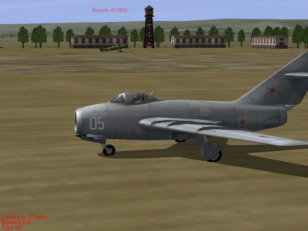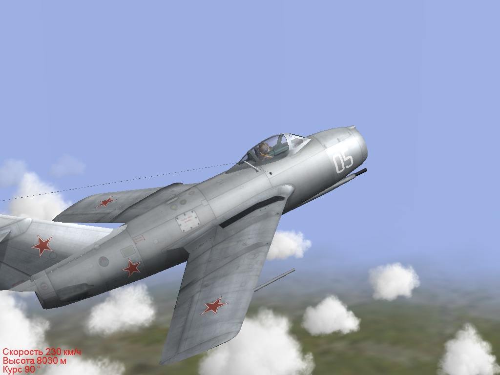1-ое Чкаловское военное летное училище, 814-ый УАП, аэродром «Меновой Двор», 5 сентября 1957 года, время 10 час 00 мин, погода-ПМУ. Вот и подходит к завершению ваше обучение в военном летном училище. Вы успешно завершили программу обучения на поршневом учебном самолете ЯК-18У, перешли на второй курс и уже завершаете программу обучения на реактивных истребителях МИГ-15. Сначала успешно освоив учебный реактивный самолет УТИ МИГ-15 и сдав все положенные зачеты, два месяца назад вы получили допуск к самостоятельным полетам на боевом одноместном истребителе МИГ-15. Программа освоения МИГ-15 так же успешно завершается – по всем дисциплинам у вас отличные оценки и училище вы должны закончить по 1-ому разряду (впоследствии это стало называться «с отличием»), а значит, после окончания училища и получения диплома, будете иметь право выбора дальнейшего места службы. Полетное задание: Сегодня у вас одно из завершающих учебных упражнений Курса боевой подготовки истребительной авиации (КБП ИА) – полет на практический потолок. С разрешения РП запустить двигатель и вырулить на исполнительный старт. Выполнить взлет и по курсу взлета (магнитный курс 90 градусов) начать плавный набор высоты до практического потолка. Внимательно следите за скоростью полета (не допускайте ее снижения менее 280 км/час), а так же следите за отсутствием перегрева двигателя. При снижении скорости необходимо периодически выдерживать горизонтальные площадки для ее разгона. После набора высоты практического потолка развернуться в сторону аэродрома вылета, убрать РУД на режим МГ и начать снижение, следить за скоростью полета – она не должна превышать максимально допустимую. Выйти в зону аэродрома «Меновой Двор», снизиться до высоты 1000 м и сделать левый круг над аэродромом. Выполнить посадку на аэродром «Меновой Двор» и зарулить на свою стоянку. Будьте внимательны и осторожны – курсанты младших курсов выполняют плановые полеты на поршневых ЯК-18. Скин вашего самолета – стандарт. Вариант вооружения – стандарт. Мне удалось набрать практический потолок на виртуальном МИГ-15 – 14000 метров. У реального МИГ-15 (с двигателем РД-45Ф) он составляет 15200 м. У реального МИГ-15БИС (с двигателем ВК-1) он составляет 15500 м. |