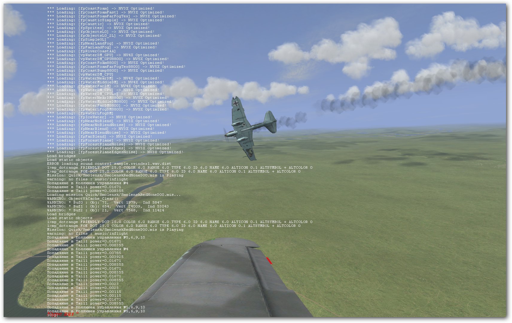 Il-2 test ControlArmor - Стандартная модель повреждений с выводом информации о повреждениях РУ в консоль (Просто чтобы знать по какой причине в оригинальном коде происходят отказы рулей управления).