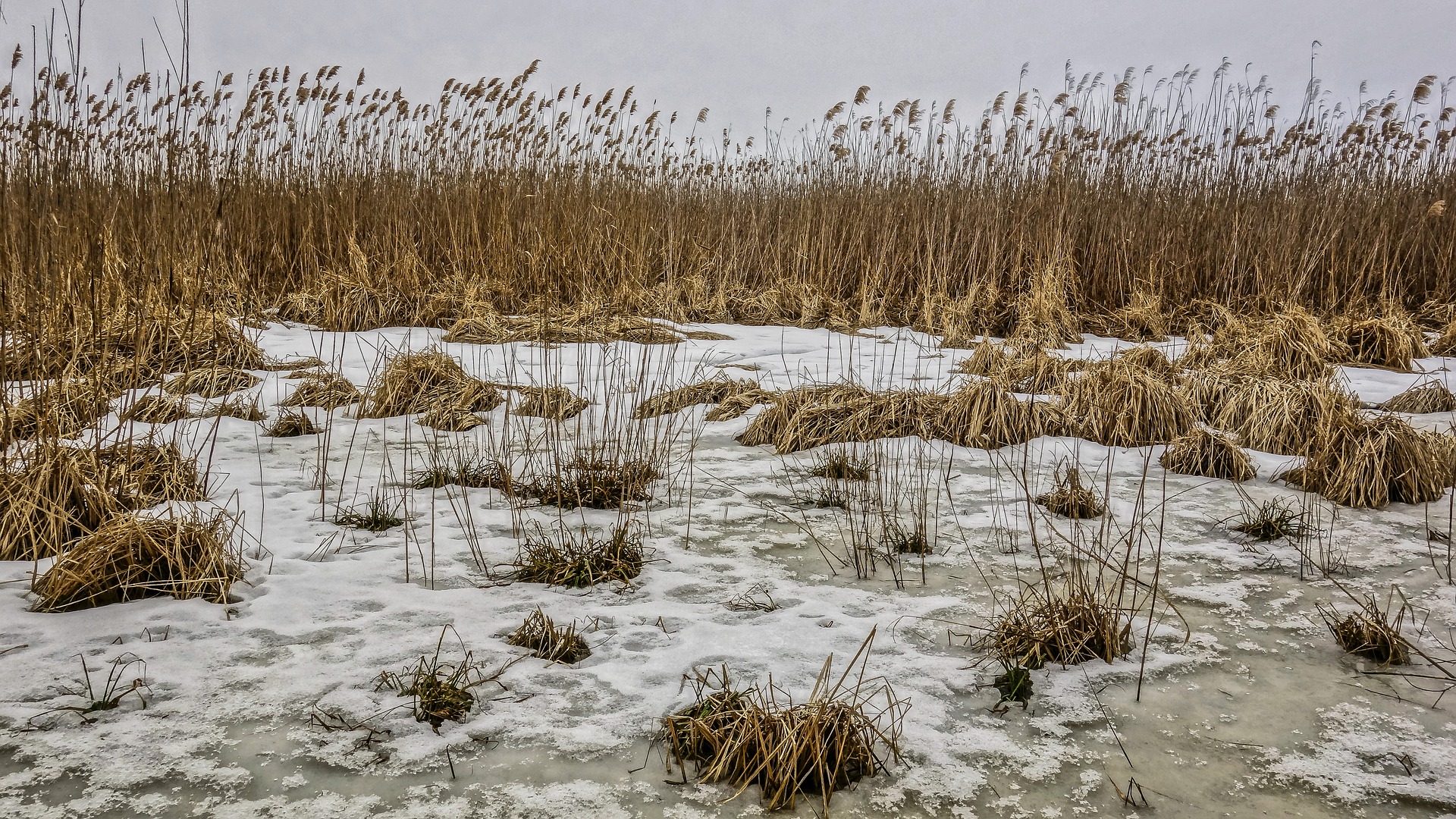 С зимы и аж до середины июля весь камыш бежевый в заболоченных низинах, пока новый не поднялся в полный рост (на последних шотах).