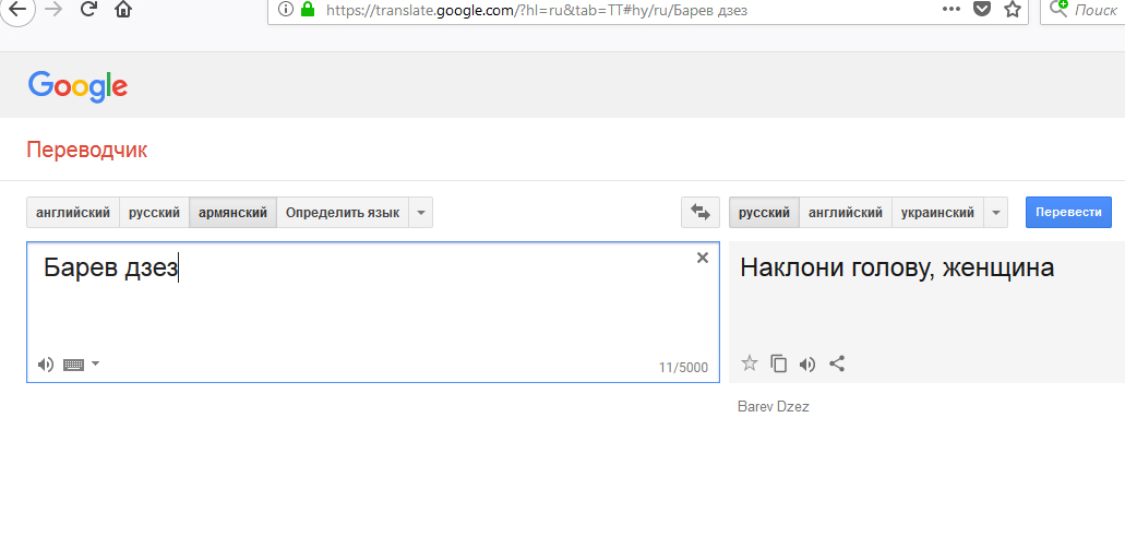 http://langs.pro/publications/32/ Забей в Гугл-переводчик Բարև ձեզ получишь точный перевод. В Тбилиси армяне почти всегда здоровались наподобие: ВОнцес, аймАрт!