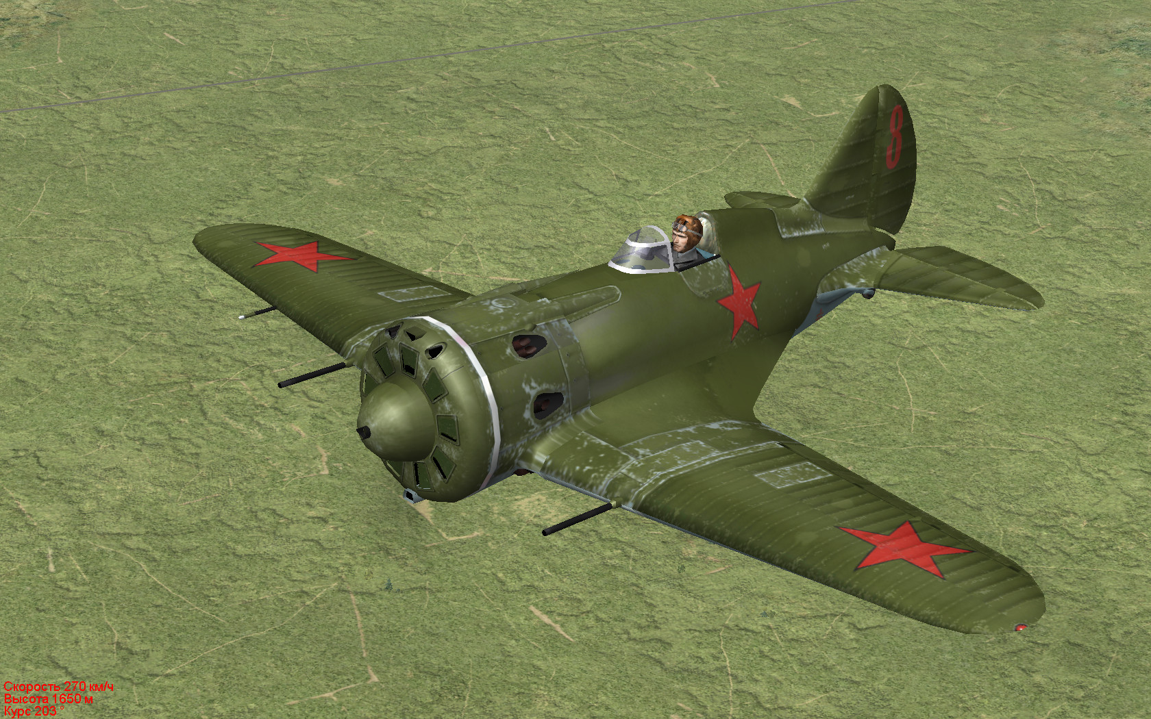Самолет И-16 тип 18 выбран потому, что в книге описывается пулеметный (а не пушечный) И-16 на котором воевали в первые недели войны (я внес поправку к книжному сюжету – действия происходят именно на Западном фронте). Т.к. кампания безмодная, то наиболее подходящим самолетом является И-16 тип 18. Да и скины для него подобрать не очень сложно (правда тут нужны сильно «потертые» скины – но только 2 штуки).