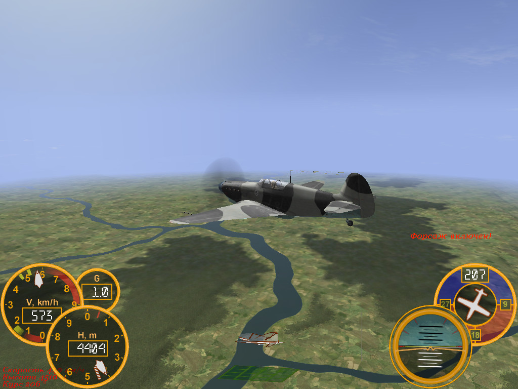 Добавлено немного сопротивление фюзеляжу и крыльям - на увеличенные радиаторы. В крыльевых радиаторах - насколько помню - ещё убрали щель между крылом и радиатором, что добавило сопромата. У Финнов получились замеры скорости у земли 515-523 км. в час. - http://www.kurfurst.org/Performance_...9G2_MT215.html - С новой полярой на номинале 99 проц. тяги Густав летит 515 км. у земли возле Дубровно. Нал лесными массивами скорость немного выше - так нравиться Иловским хотелкам зашитым в игру. Картинки скорости внизу. На бовом развороте на номинале набор высоты около 1000 метров. В бою с ботом на Як-9 с новой полярой отрыв происходит только после 5000 метров. Противопоказан бой на виражах - до 7500 метров Як может перевиражить Густав-2. На вертикалях можно сделать до 5 подъём-переворотов - дальше инициатива переходит к Яку как более лёгкому самолёту. Думаю, что в ттх уложился. И ещё: Густав более вялый в сравнению с Фридрихом-4. И вираж должен быть на секунду-две больше. ФМ Густава-2. (винзу в архиве фм Густав-2МОД.) Код: