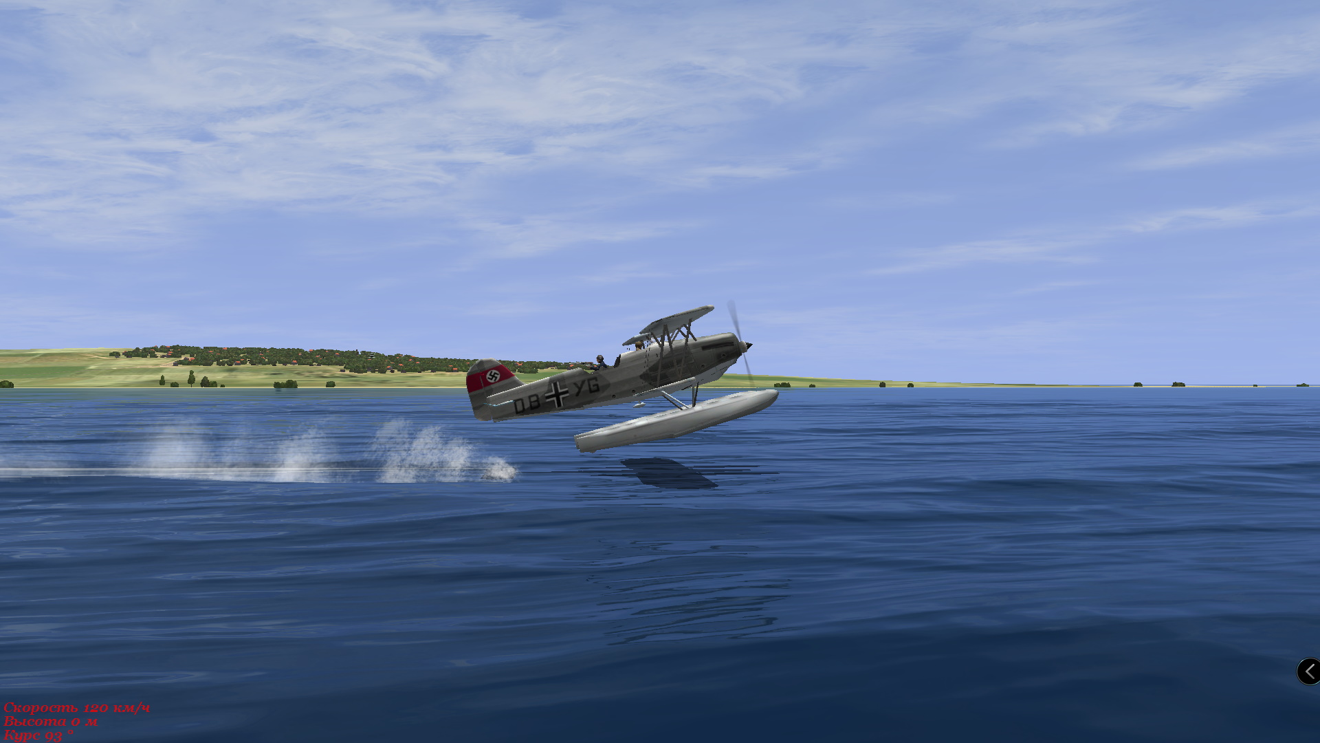 Получилось взлететь на Хе-60. Кривой он, конечно... Даже скинов нормальных нет.