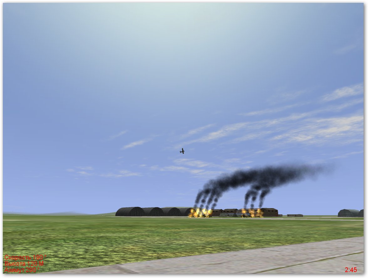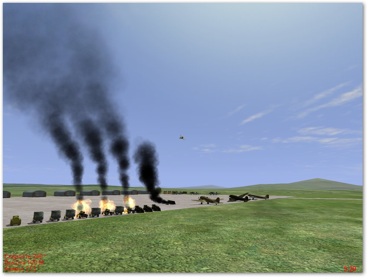 По поводу дымов,если не трудно,выложи пожалста отдельно,дым стац обьектов и горение,как то ,самоли статик,вагоны,и дома,ток отметь что к чему,и если к ним идут классы то и их,я попробую помудрить если не возражаеш,машинки и танки нашел,немного поковырялся,вроде нормально сделал,потом скринчики прецеплю,(поздно и спать охота)),да,и эти бензобаки или нефтехранилища,которые на дроме,хочу ко всем попробовать горение и дым приладить.Вот скрин шотики,вопрос,скрин 19 на нем стоянка, горят грузовики,огонь мой анимированый(из моей сборки)дым над ними Кирилла ранний,немного переделал,а вот жирно дымящий бензовоз это из вашей сборки,время дыма крайне мало,просадку он дает,потому как таким дымом дымят самоли,стат,вагоны,вот вопрос а что если эти дымы от грузовиков присобачить к бензовозам самолям вагонам?при пролете и сквозь них и рядом кружил-просадки фпс нет(моя система очень средняя атлон 2200,память 1024,карта видео джи форс 5200 ,128 память на борту,можно и к другим обьектам прикрутить их?взрыв на скрине тоже из моей сборки,от вашей я взял только дым трассера, и дым эресов,так что не обессудьте.все остальное у меня уже есть и подбирал я сборку свою для средних компов.