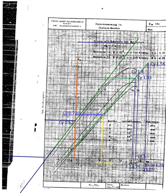 За месяц в голове немного устаканились россыпь цифр из разных источников. Оригинальной продувочной поляры для ФВ-190 у меня нет. Продувку французкими любителями круассанов можно брать только как трафарет, поскольку лица неарийского походження заинтересованы приуменьшать достижения оккупантов. Получается вот так: Код: