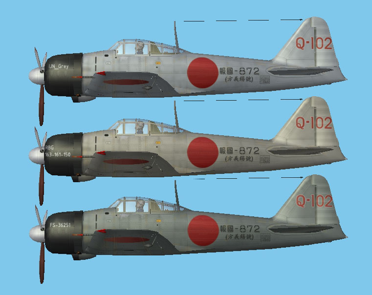 Ну по поводу отсутствия стандартов это конечно лажа, стандарты были у всех. И в частях самолеты тоже не красили по своему усмотрению. Вот то что в процессе войны у японцев с красками становилось все хуже - это факт. И пигментов не хватало и качество их значительно ухудшалось. Именно поэтому в 44-45 годах самолеты такие облезлые. А для скинов оттенками лучше с помощью визиринга поиграть - один борт сделать почище, другой попотрепаннее.