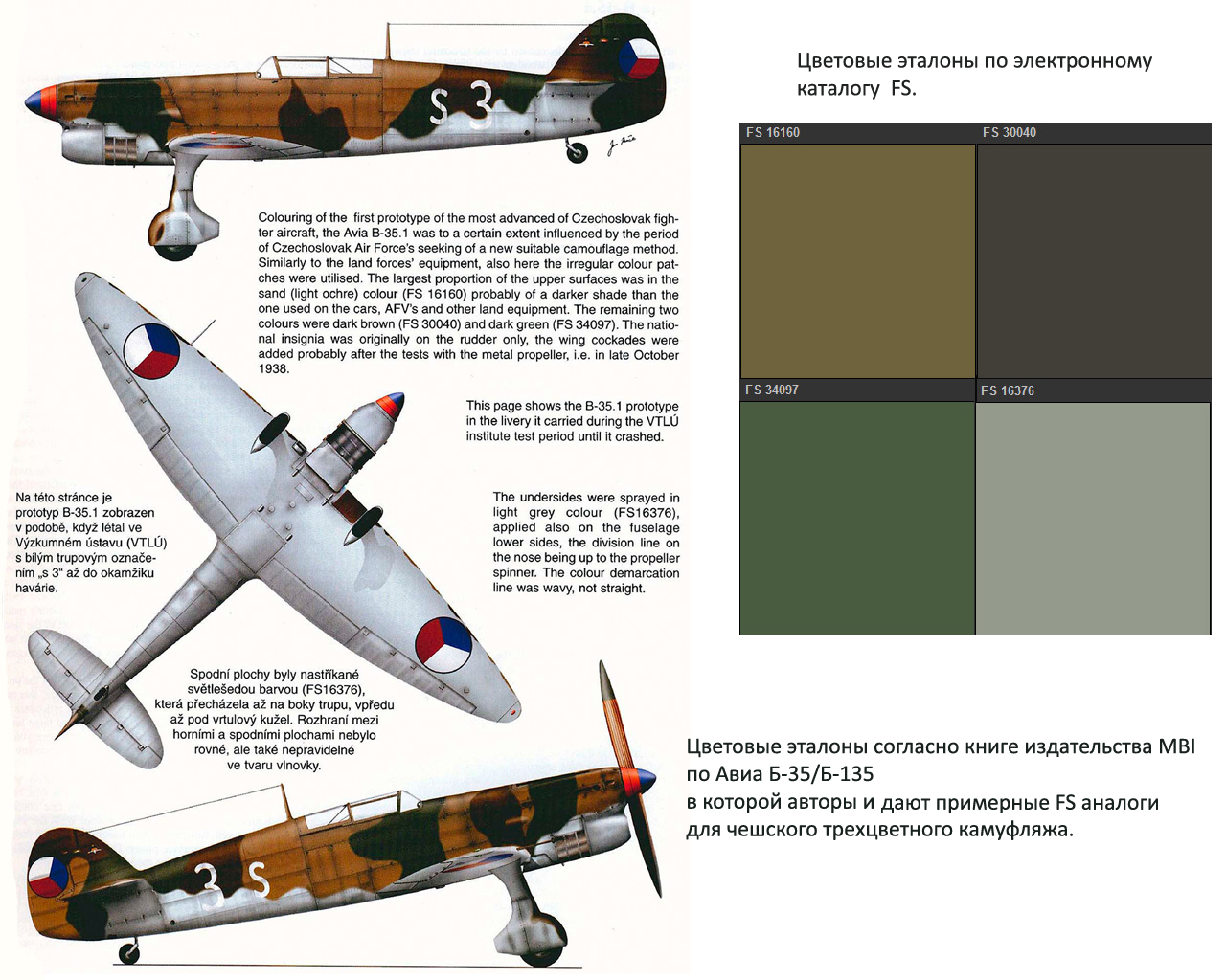 Этот вариант сделан с применением цветовых эталонов , которые были рекомендованы в книге издательства MBI , как наиболее близкие к оригинальным цветам чешского трёхцветного камуфляжа. На примере чешского истребителя B-35. Насколько эта информация истинна , остаётся только гадать.