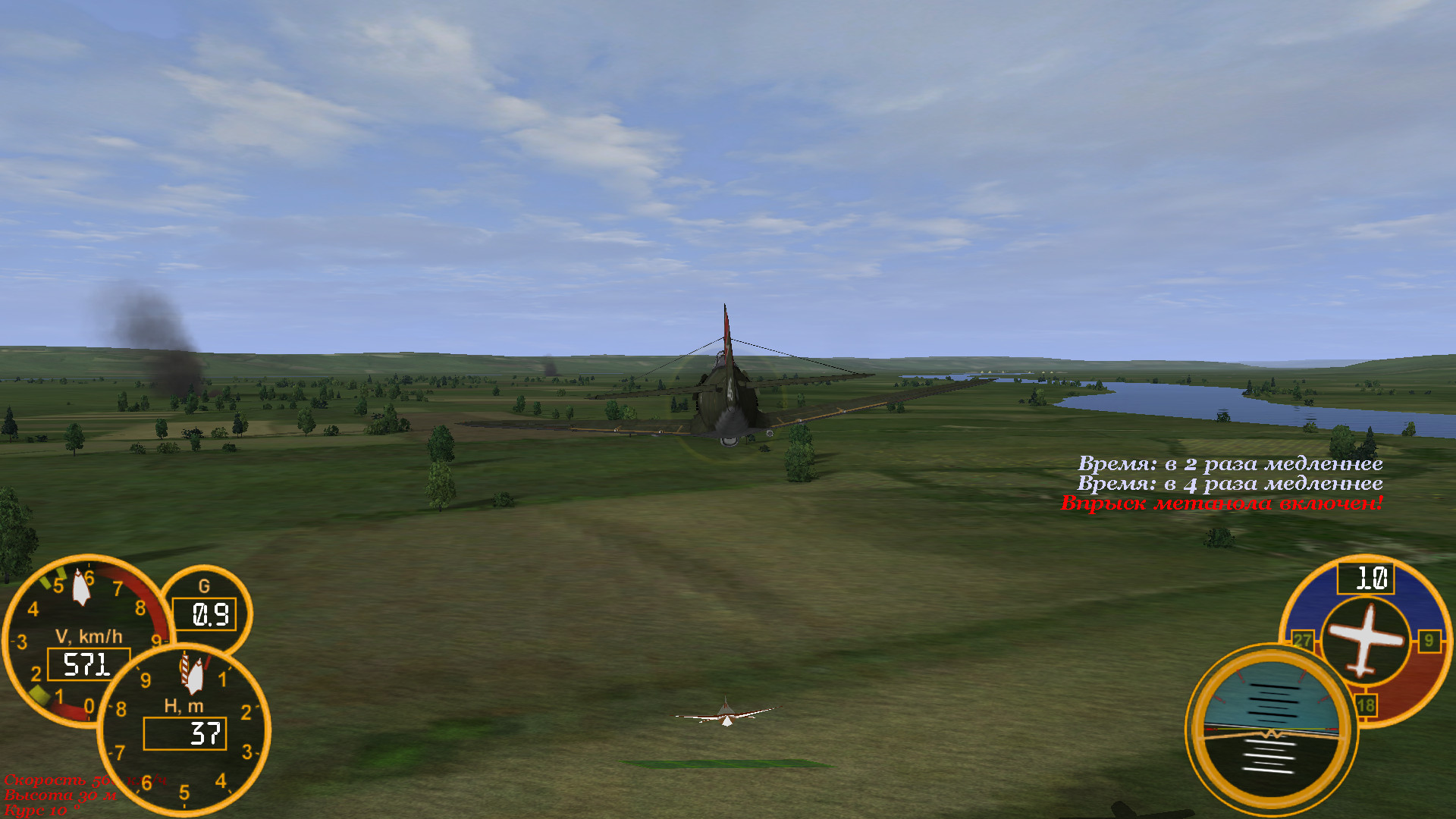 Проверил метанол на 1000 метрах - вместо 551 км/ч скорость стала 591, но перегрев. И это хорошо, как мне кажется. Прикольно - выдает не 110 %, а 109)