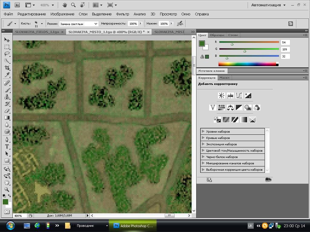 брал например один из тга, который был вытянут из сфс-ки дефолтного Ила., россыпь чёрных точек не заставила себя ждать., даже после точечной зарисовки другим подходящим цветом эти злополучные точки проявлялись., перегружаешь комп и - вуаля - точки есть, даже часто больше чем было. Некоторые тга удавалось почти избавить от этих точек - через месяц-другой работы компа они проявлялись в единичных случаях. На картинках ниже показано для примера о чём я говорю тут., ну и сам процесс замазки чёрного горошка. Некоторые тга из САСовских карт при попытке изменить цветовую гамму - выдают целые поля разноцветных клякс и красных разводов. Я не профи в фотошопе, очень даже учусь только. Премудростей знаю мало. Иногда бывало что просто отказывался от какого либо тга - потому как он просто не поддавался обработке из-за "артефактов". Почему это пишу? Может кому будет в пользу - тем кто рысует себе и для модов тга филдов для Ила. Труд ещё тот, конечно. Но результат труда стоит - земля в Иле должна выглядеть более естественно и не содержать аляповатых нагромождений. Мне очень даже нравиться как выглядит земля в БзС в последних патчах. Прогресс у них на лицо, то есть - на землю. Не хочу сказать что супер-пупер, но очень презентабельно и вблизи и сверху. Последний раз редактировалось Vasya; 15.12.2016 в 02:37. Причина: исправление ошибок |