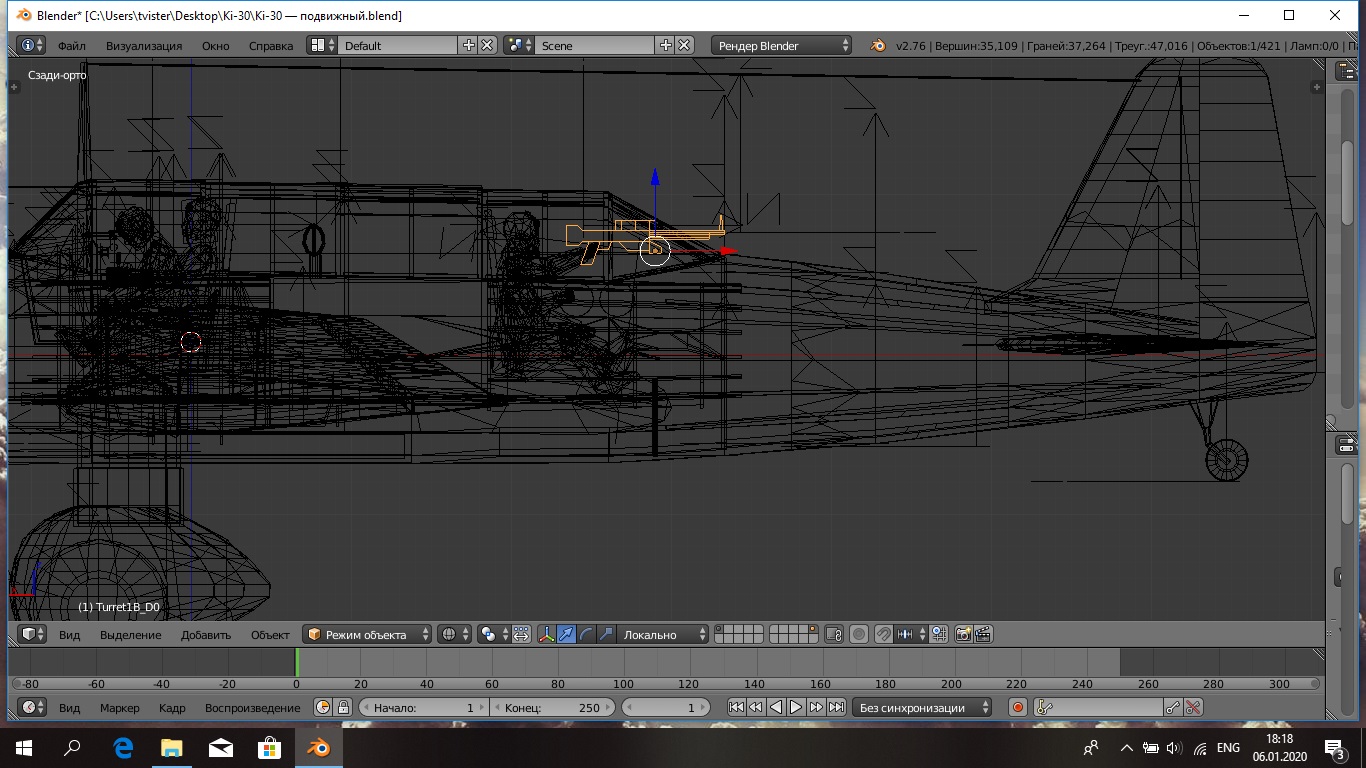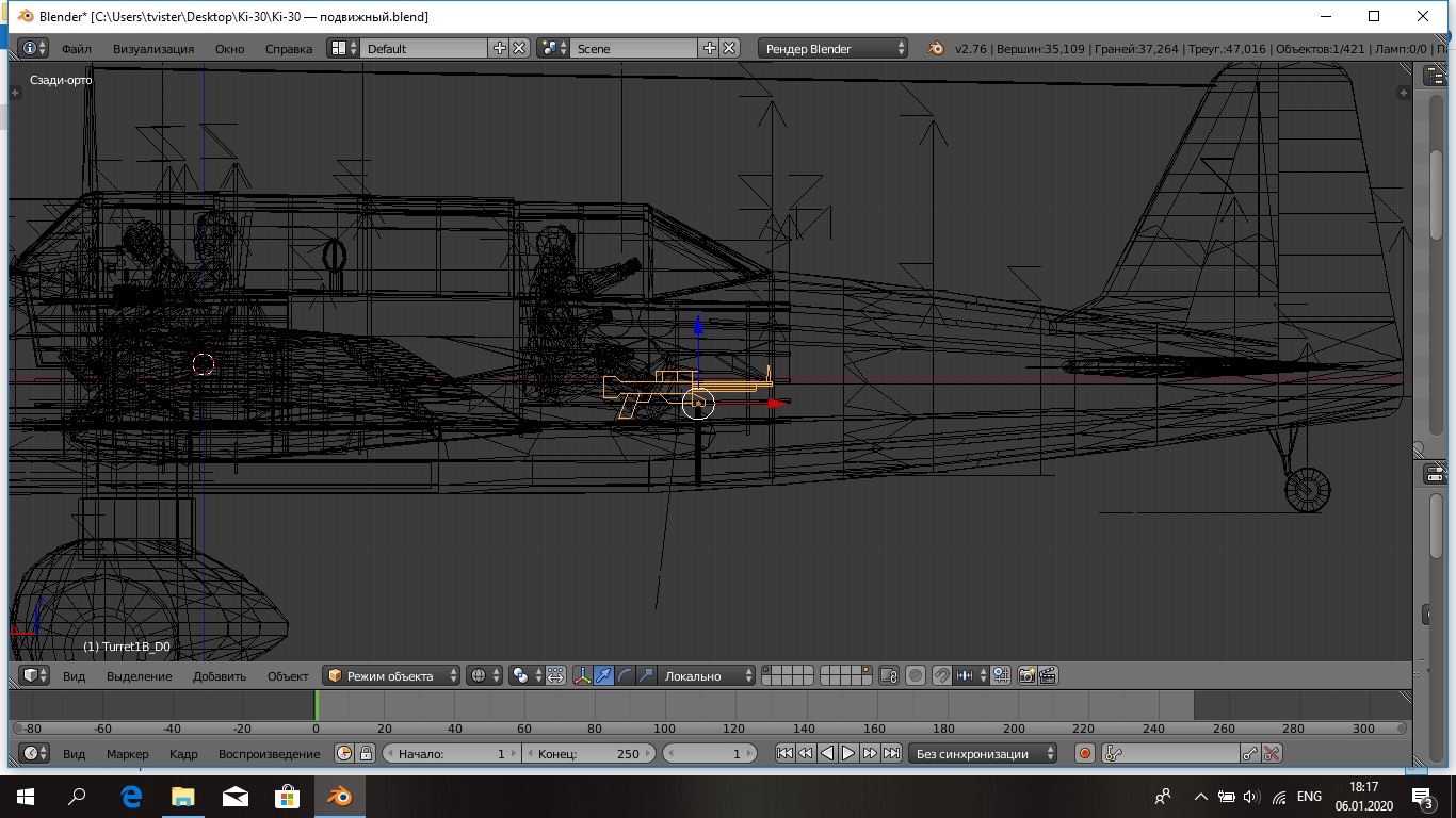 Всех с Рождеством! Удалось решить последнюю проблему, анимацию заднего пулемета Ки-30. Все очень просто, изменить угловое движение основания турели, на поступательное. Не исторично, не правильно с технической точки зрения, но я вообще не знаю как была устроена турель Ки-тридцатого. Думаю, что никто не знает. Пока сварганил что то типа корабельной установки на стойке-вертлюге. Но порою литературу, может чего ещё найду. Единственно с чем пока не справился, большое расстояние которое проходит пулемет, при переходе из походного положения в боевое. Закончу 3д турели, может подрихтую пулемет и примусь за оверлеи.