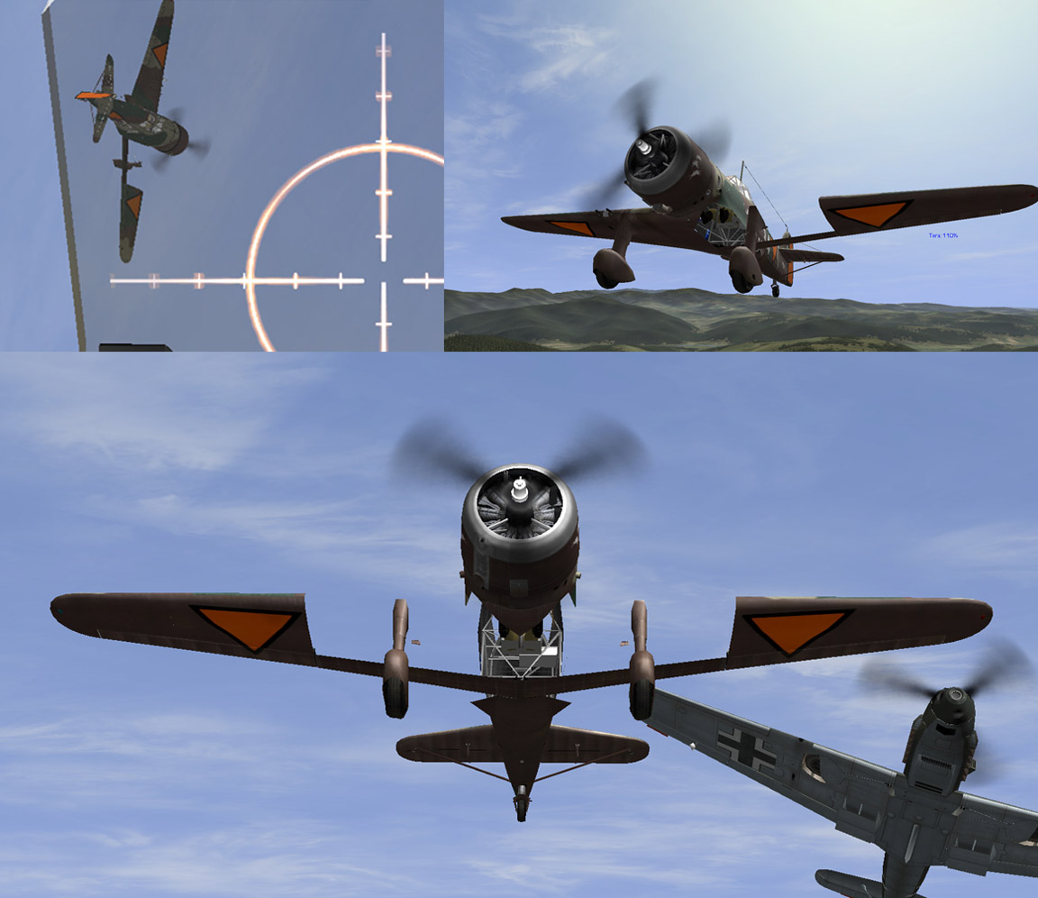 Вроде все нормально, но... Чтобы задействовать верхнюю и нижнюю турели надо открыть блистеры. Я пробовал в простом редакторе только пока, но почему то через полминуты-минуту после старта блитсеры открываются сами даже при отсутствиии протвиника. А потом, если их закрыть насильно - открываются опять. Очень забавно сделан бомбовый прицел у итальянца. Кстати не мешало бы изучить технический аспект - а то на самолете 36ого года и винты флюгирируются и огнетушители на моторах стоят.
