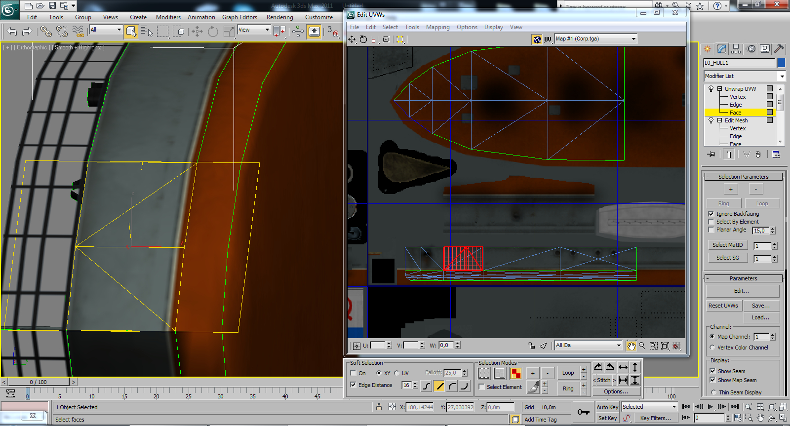 Там мапинг сделать покорректнее надо, например так как на скрине. Или же вообще, т.к. текстура имеет свободные неиспользуемые закутки, замапить проблемный участок левого борта меша Hull1 своей картинкой. За одно обратил внимание на палубу - она набрана из симметричных полигонов относительно нуля. И при этом она плоская. И мапинг у неё без зеркалирования. Т.е. банально удалить рёбра по оси палубы и получится и тут полики убрать лишние. Подозреваю что и по всему кораблю так. Последний раз редактировалось yt2; 01.09.2017 в 22:38. |