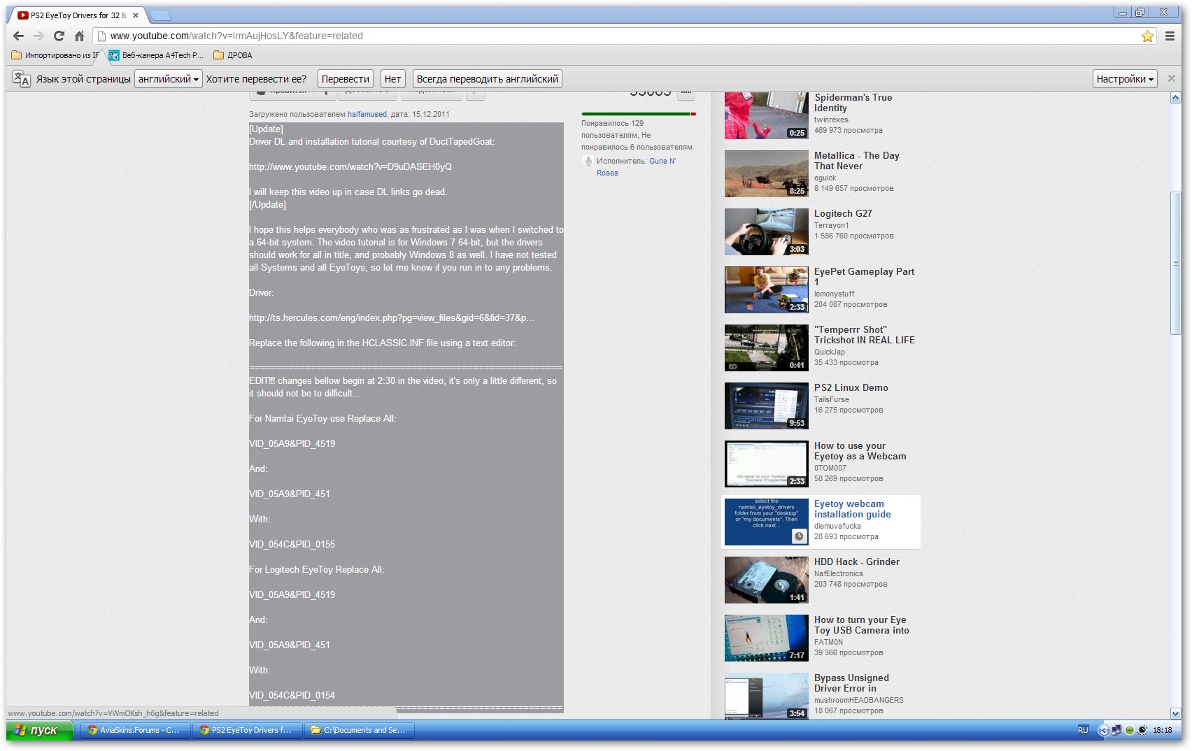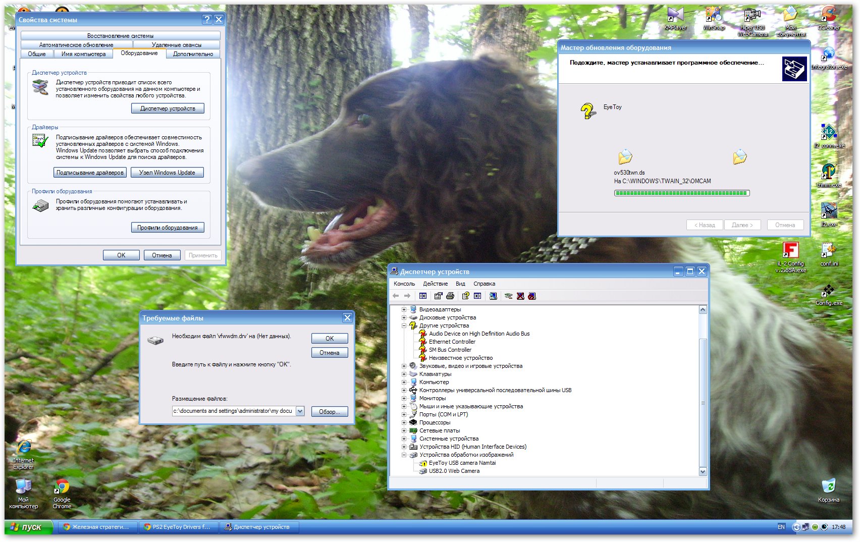 Есть камера от плей стейшн 2 http://www.iplayplaystation.com/eyetoy-as-webcam/ умные люди переписали драйвер вот этой камеры http://ts.hercules.com/eng/index.php...&pid=183&cid=1 для работы Е-Той, в виндоус 7 64 и, виста 64. У меня стоит ХР-64. По какой то причине, ил, лучше всего пашет именно на ней. Обзор у меня фритрек, была проблема на 7 ке, http://forum.aviaskins.com/showthread.php?t=2843 но я ее решил откатом на хрюшу 64 и установкой ранних дров. Камера у меня почти одинаковая с Геркулесом по ссылке выше, выдает 30 фпс, в принципе устраивает все, но вот хочется етойку приспособить, просматривал эту темку http://www.youtube.com/watch?v=IrmAu...eature=related по переделке драйверов, на висту получается, 7ку тоже, на 64 хрюше в конце установки выдает мне надпись, см скрин, просит vfwwdm.drv Может кто из знающих может помочь, переписать драйвер под хрюшу 64. Буду безмерно благодарен. Прилагаю архив, в нем драйверы геркулеса переделанные для е -той, под 7ку 64 и висту 64, так же экзе файлы установки драйверов камеры геркулес какие были взяты за основу, так же драйвер е- той камеры, для хрюши 32 бита. Скрины с ютуба, параметры переделки дров, ну по ссылке на ютуб, там надо развернуть ссылку и откроется пояснение. Вроде не сложно это, но, у меня ума не хватило ![]() Спасибо заранее. Ссылка на архив драйверов http://files.mail.ru/FR97FR Последний раз редактировалось CharliDog; 13.11.2012 в 20:55. |