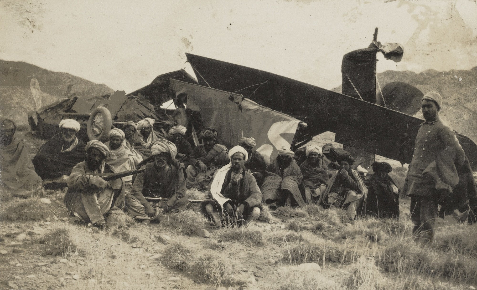 Возвращаясь к теме Афганистана. Нашел в сети вот такое фото. Моджахеды на фоне сбитого Р-1(а возможно и DH-9a). Обратил на звездочку на киле. Нижние поверхности крыла темные. Сделал вот такие варианты возможной окраски самолета.